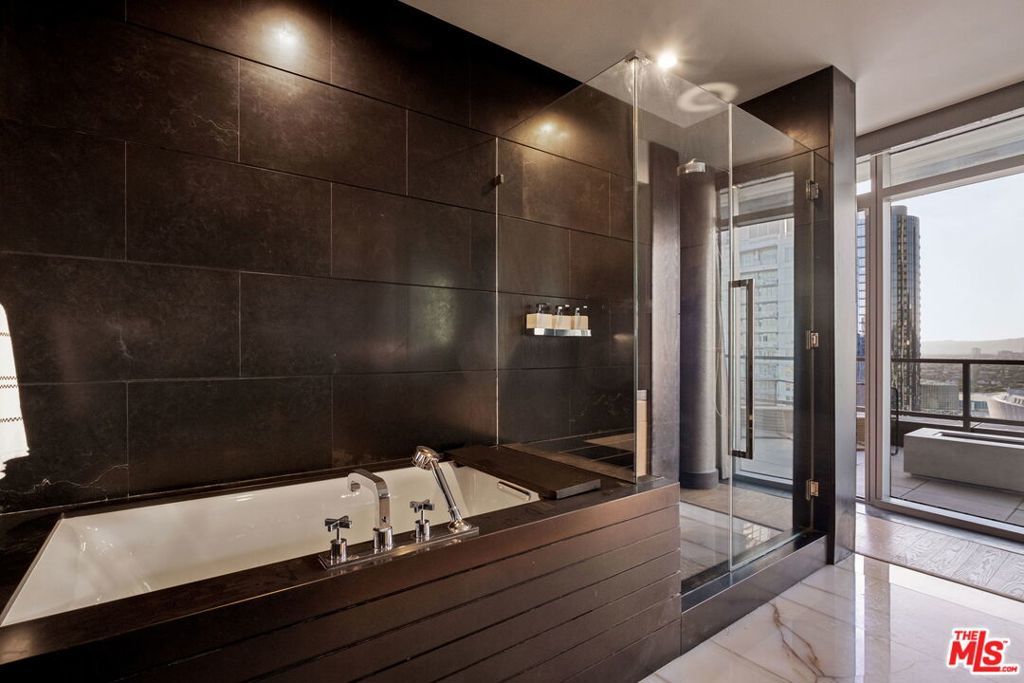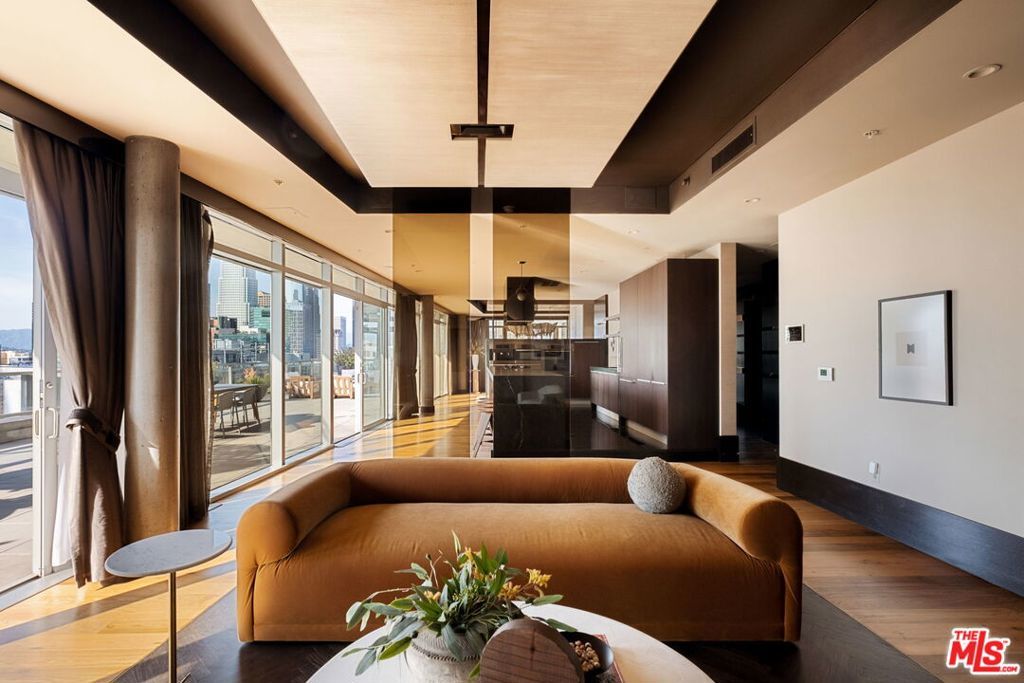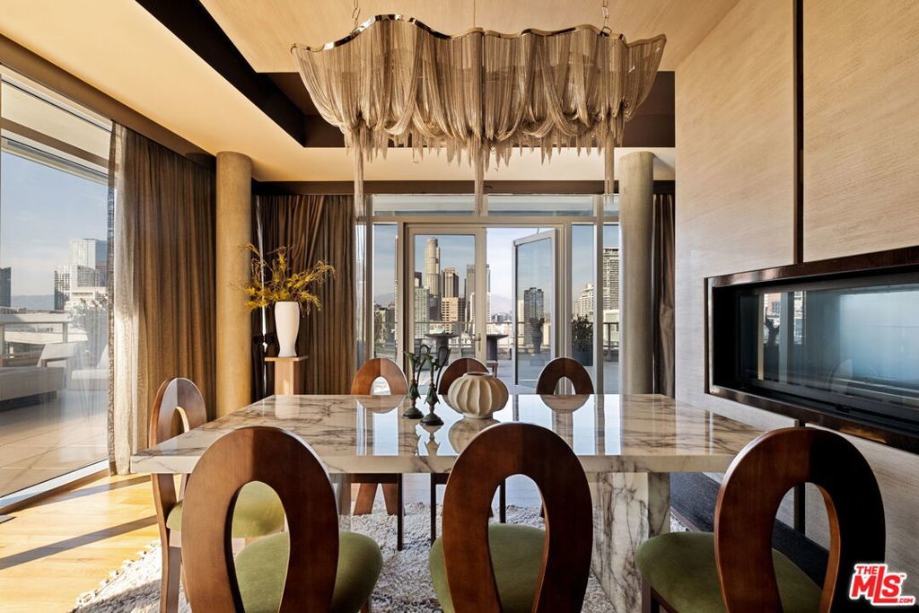 The Penthouse Residence at the Evo - the most refined offering in downtown Los Angeles. Designed and curated by Hawk and Co. for the discerning palate; suspended ceilings and foyer of hand-troweled, Venetian plaster, chevron inlaid flooring, dual sided Fireplace, automated linen drapery, Poggenpohl cabinetry and Miele appliances. Each room is framed in floor to ceiling sliders that open to the downtown skyline. The home's lighting, shades, music and security are navigated with Control 4 smart home technology. 3 bedrooms, 4 bathrooms and +3,600 sq. ft. of indoor living space, perched on the 21st floor. One of the largest rooftop balconies in downtown, measuring over 2,500 sq. ft, puts the total living space at over 6,000 sq. ft. The home is scaled to be intimate enough for 2 - or expansive enough to entertain 200. Located in the heart of South Park, with easy access to the Crypto.com Arena, LA Live, the Orpheum, Bottega Louie, Whole Foods, and the finest eateries in the city. One block away, catch the Metro to Santa Monica, Hollywood or to Union Station with access to the entire coastline. The building has 24 hour security and concierge service, a rooftop pool, fitness center, some of the lowest HOA dues downtown and 3 side-by-side parking spaces on the ground floor (a rarity), which can be rented out to other residents for a monthly income, if desired. One of the most unique residences in all of downtown, with an attention to finish and sophistication that is unrivaled. Proximity and privacy - the city is yours.