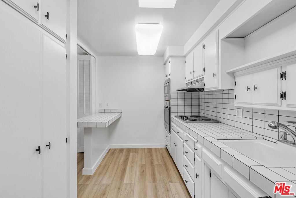 Welcome to Brentwood Terrace, where space is not just a perk, it's the whole point. Nearly 1,700 square feet of living space plus a private patio means you can finally stop playing furniture Tetris and start living comfortably. All of this sits on a quiet, tree-lined street in a vintage Brentwood building with serious mid-century charm. The fully secured building offers gated indoor parking with two dedicated spaces plus guest parking, and it's known locally as one of those rare places people actually love living in. With a walk score of 99, Brentwood's best is at your fingertips, including one of the LA's most beloved farmers markets just half a block away every Saturday. Inside, the layout is big, bright, and wonderfully flexible. Laminate wood flooring runs through the main living areas, anchoring a spacious living room, a proper dining area, and a bonus den that's ready to be whatever you need it to be -- Home office, creative studio, reading lounge, or all three. You've got options. The kitchen is fully equipped for real life and real cooking, with abundant storage, a wall oven, microwave, cooktop, stainless steel refrigerator with icemaker, and a dishwasher. There's also a generous wet bar, which means hosting just got a lot more fun. Central A/C and heat keep everything comfortable year-round. When it's time to unwind, both bedrooms deliver on size and comfort with soft carpeting and loads of closet space. They're set apart from the main living areas, making it easy to switch off and settle in at the end of the day. Big, bright, and perfectly placed, this one is hard to beat.