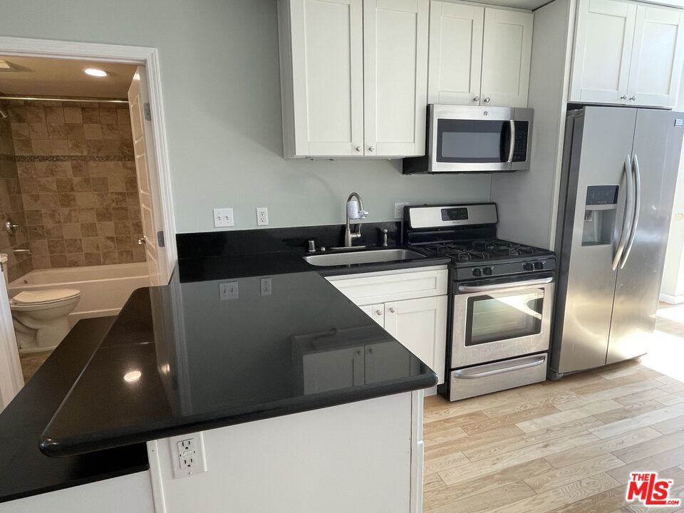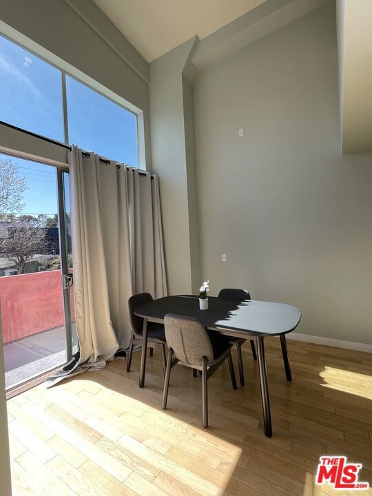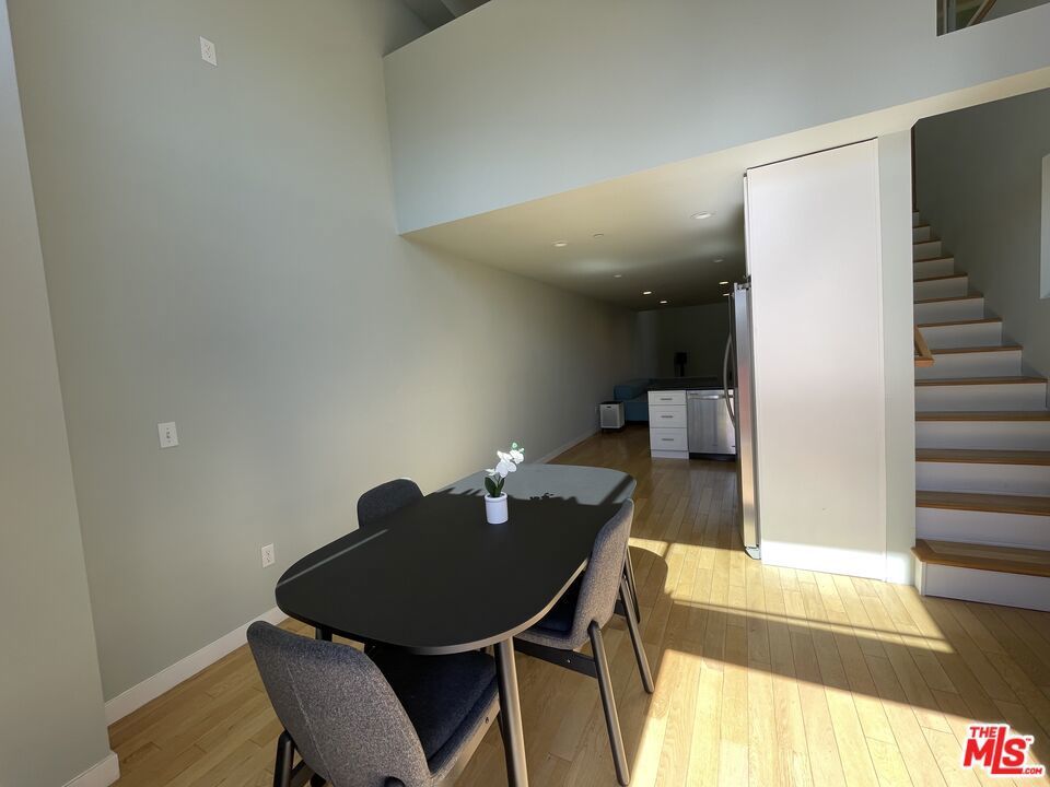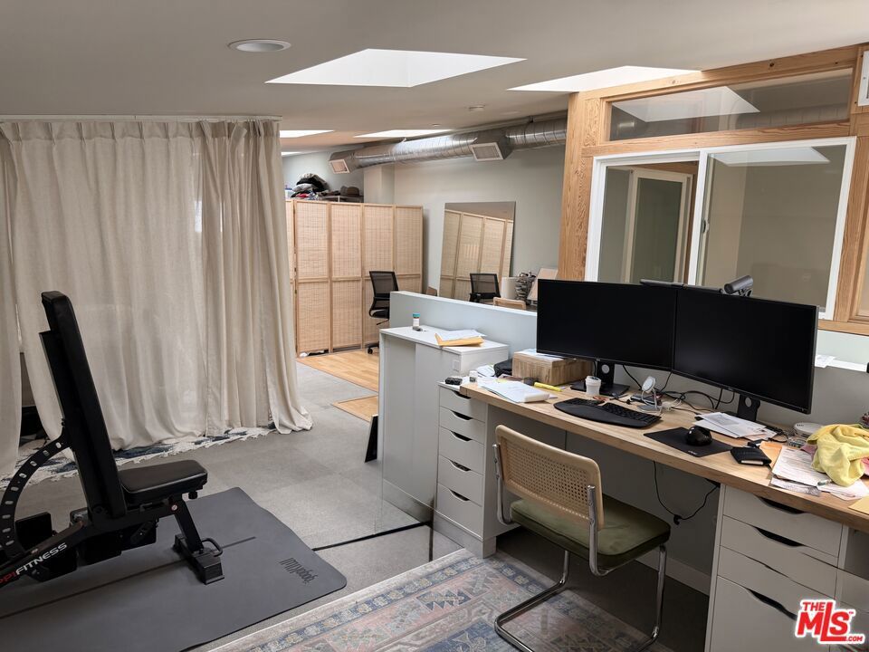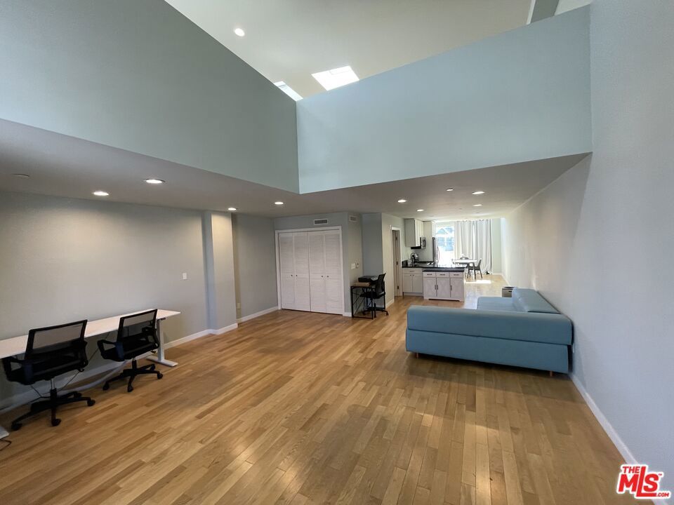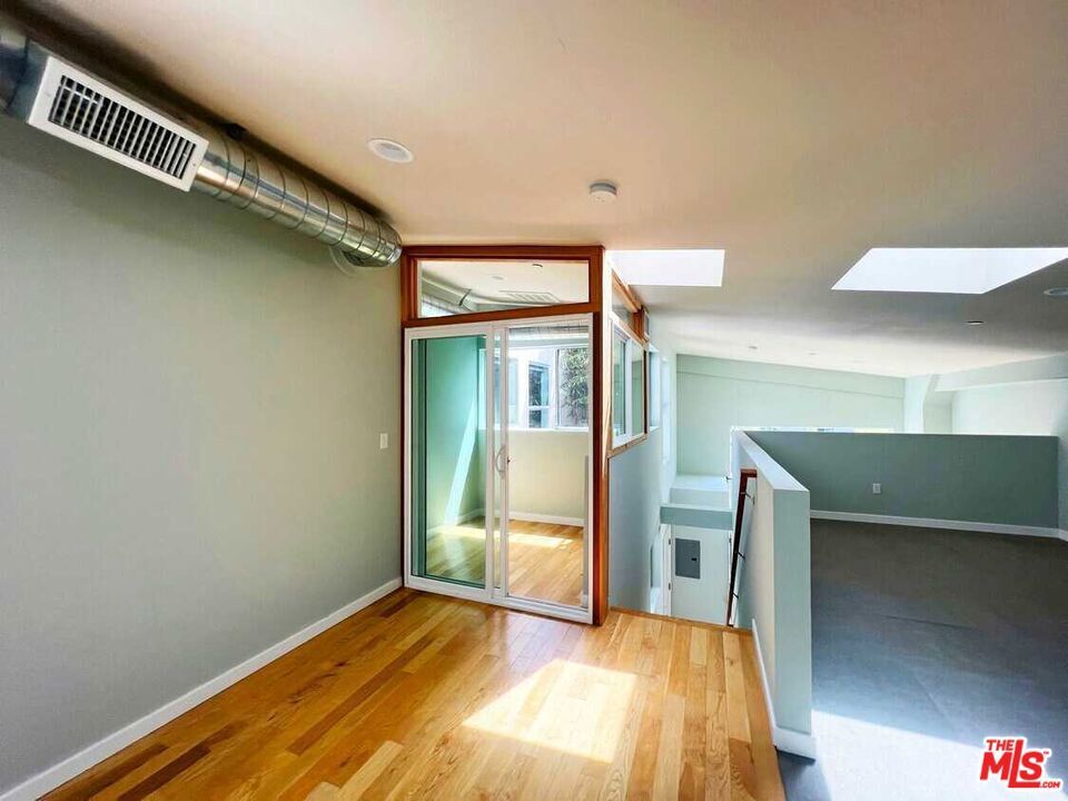Inviting Live/Work/loft in the heart of Santa Monica, close to the beach, markets, and great restaurants. One of a kind opened an air space with very high ceilings, tons of light with many skylights and operable windows. Large SW facing, sunny balcony with beautiful ocean breeze to enjoy your morning coffee. This wonderful unit is only one of two live-in units in the building. Just one common wall with a barbershop down below, open business hours, only. One covered parking, high-speed Internet, available washer dryer, and awesome air purifiers. Private entrance to great open kitchen and spacious living room. Upstairs could be a lovely bedroom with options plus an atrium room with double pane windows making for good private space. Use this unit as an artist loft, live/workspace, business, or to simply live comfortably