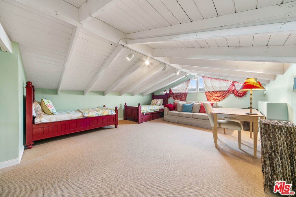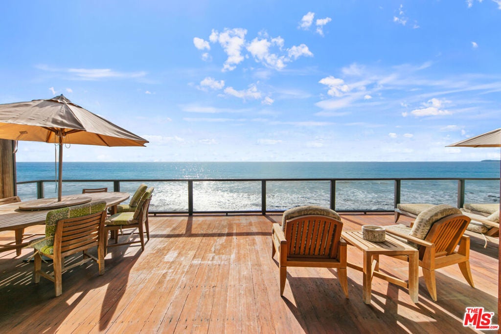 This exceptional Malibu Road beach home offers approximately 50 feet of coveted oceanfront, set on a pristine, sandy stretch of the iconic Malibu coastline. Designed to be both elegant and welcoming, the interior features rich hardwood floors throughout and an abundance of natural light. Floor-to-ceiling windows showcase sweeping ocean views and open onto a spacious beachfront deck perfect for enjoying the sights and sounds of the Pacific. The home includes three beautifully appointed bedrooms and a generous upstairs bonus room, ideal for lounging or entertaining. The beachfront primary suite is a serene retreat, with direct deck access and panoramic views that bring the coastline to your doorstep. A private, enclosed courtyard provides a peaceful space for outdoor gatherings, offering both seclusion and charm. With a dedicated staircase leading straight to the sand, this home delivers the ultimate in Malibu beachfront living. Available June through Labor Day.