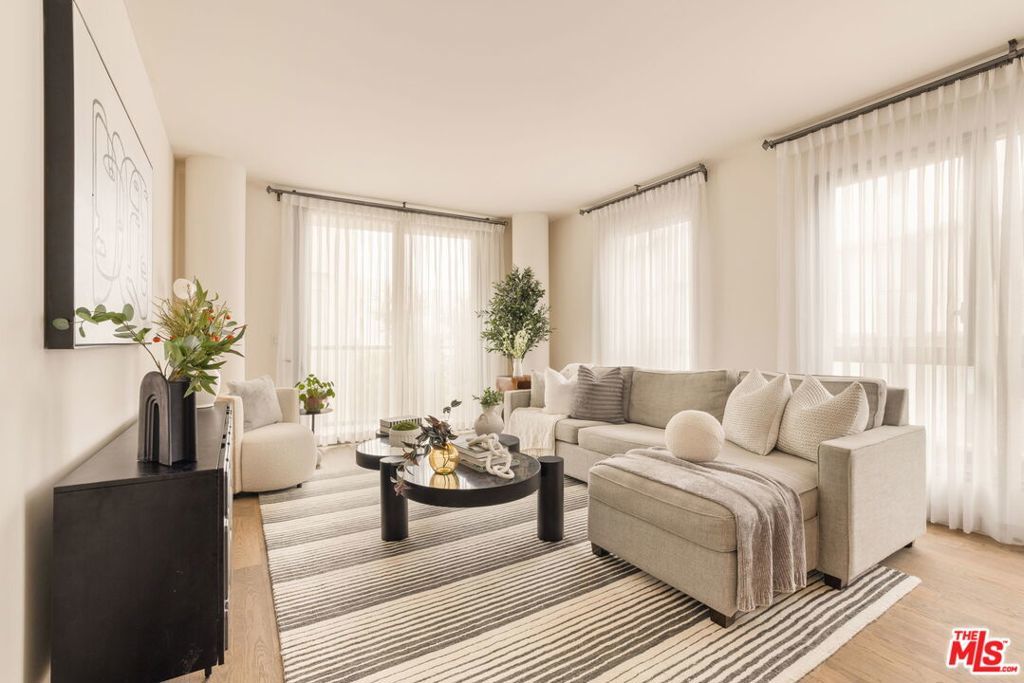 Welcome to this beautifully designed 2-bedroom 2-bathroom corner unit in the prestigious full-service building 'The Seychelle'. Just one block from the beach, this home offers luxury coastal living with top-tier amenities and an unbeatable location. Designed by Clodagh Design International, the open layout features wide-plank wood floors, sleek cabinetry and an abundance of natural light. The kitchen includes Thermador stainless steel appliances, a marble island that opens to the dining and living areas as well as a private patio. The ideal split-bedroom floor plan provides upmost privacy, with a spacious primary suite that includes generous closets and a spa-like bath with dual marble vanities and large walk-in shower. Extras include in-unit laundry, two gated spacious side-by-side parking spots and plenty of guest parking. Enjoy resort-style amenities like a rooftop saltwater pool and hot tub with breathtaking ocean views, BBQ areas, a tranquil courtyard, fitness center with yoga/pilates studio and 24-hour concierge and doorman. Coastal luxury, comfort and convenience. This is your opportunity to own one of the most sought-after 2-bedroom floor plans in the prestigious building, The Seychelles.