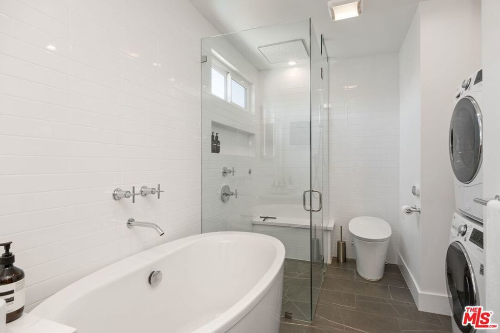 Welcome to the beautifully remodeled top-floor residence, Unit #302 at the Trafalgar Building. Thoughtfully renovated from top to bottom, this turnkey condo leaves no detail overlooked and showcases refined finishes with modern luxury throughout. With no shared walls on either side or above, the unit offers exceptional privacy and tranquility. The home features recessed lighting, wide-plank luxury vinyl flooring, a separate powder room, and a gas fireplace anchoring the spacious living area. Expansive windows and sliding glass doors open to a private balcony, filling the space with abundant natural light. The open-concept, fully remodeled kitchen boasts crisp white cabinetry with ample storage, elegant Calacutta-style white countertops, and a charming breakfast nook with a built-in bench and direct balcony access. High-end stainless-steel LG appliances complete the kitchen, including a French-door refrigerator, smooth-surface glass-top range with double oven, and whisper-quiet dishwasher. The generous primary suite offers a custom walk-in closet with built-in shelving and drawers, along with a spa-inspired bathroom featuring a large walk-in shower, separate soaking tub, and a Kohler intelligent toilet with bidet. A stackable LG washer and dryer are conveniently located inside the unit. Two dedicated tandem parking spaces are included, with the option for additional rental parking. This well-maintained mid-century community offers resort-style amenities, including a sun-drenched pool and deck, sauna, newly remodeled lobby, recreation room, and refreshed exterior landscaping. A truly special place to call home, ideally situated on one of West Hollywood's most desirable streets. Enjoy convenient access to Melrose Avenue and La Cienega Boulevard, with premier dining, fitness studios, shopping, nightlife, galleries, and cafes just moments away. Nearby gourmet markets include Trader Joe's, Gelson's, Erewhon, and Laurel Supply Grocery, along with King's Road Park and everyday conveniences. West Hollywood living at its finest.