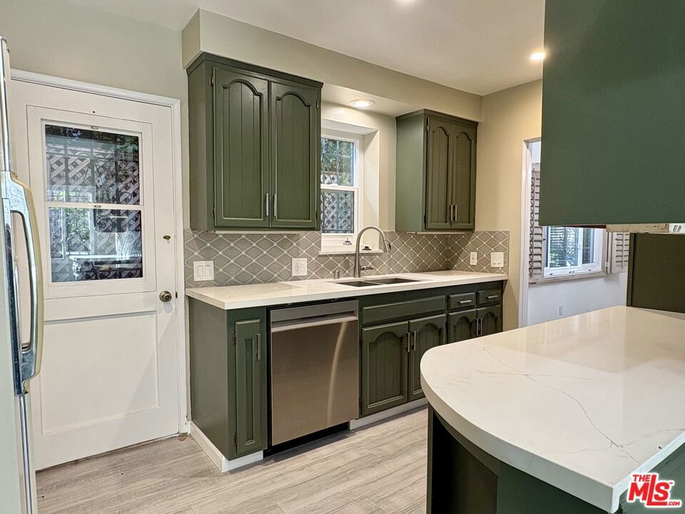 Beautifully remodeled townhouse-style unit in a duplex. The inviting living room features a decorative fireplace and flows into a formal dining area, which opens to a spacious kitchen with new appliances and ample cabinet space. One bedroom and a full bathroom are located downstairs, with two generously sized bedrooms and an additional bathroom upstairs. Hardwood floors throughout, central A/C, and excellent closet space. Includes one garage space plus one driveway space. Shared backyard with the rear unit. Located in an amazing, highly sought-after area close to The Grove, Pan Pacific Park, and an array of restaurants, coffee shops, and boutique shopping.