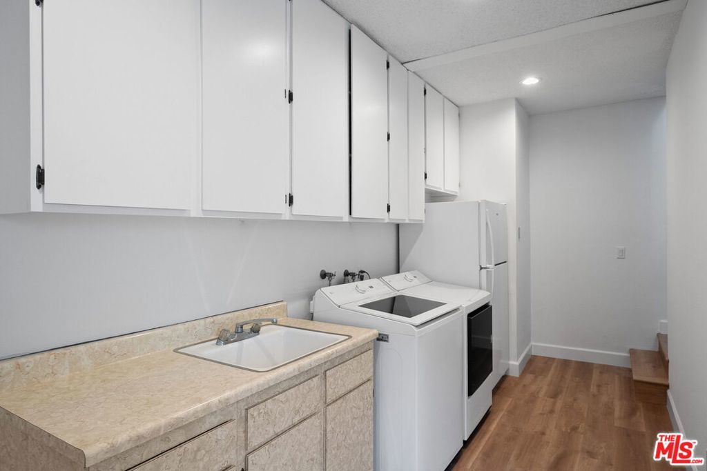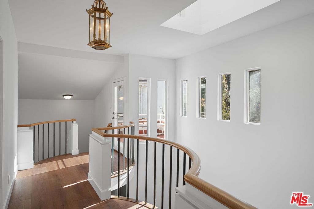Charming, bright and extensively renovated home in Franklin School District with guest house! Brand new stainless steel appliances, beautiful engineered hardwood floors, in-ceiling lighting and central A/C throughout! Super clean and freshly painted and ready to move in. Great curb appeal on one of the best streets in Santa Monica, with a fountain and graceful archways greeting guests! Phenomenal natural light via skylights. Tons of storage and closet space. Large living room with a lovely bay window and decorative fireplace. Formal dining room with wet bar and wine cooler opens to the peaceful backyard. Sunny kitchen with stainless steel appliances, gas Viking cooktop, recipe desk and lots of thoughtfully designed pantry, cabinet and counter space. Adjacent to the kitchen there is a welcoming family room or a more casual dining space. Excellent office or 4th bedroom with bathroom opens to backyard. Upstairs there are 3 large bedrooms and a generous, west-facing, deck- a great place to enjoy ocean breezes and sunset views. The primary bedroom features vaulted, beamed, ceilings, balcony, walk-in closet, large bathroom with spa tub and spacious shower. Brand-new full-sized washer & dryer in the main house PLUS a second set (in addition to a second refrigerator) in the detached guest house! The backyard is a serene retreat with entertaining patio- perfect for BBQ and dining al fresco! Surrounded by privacy hedges there is a grassy lawn, citrus tree and gated carport (for a 3rd vehicle). Above the two-car garage there is a large guest space/office/gym with full bathroom. Inviting and versatile floorplan a fantastic place to call home! Move-in ready!