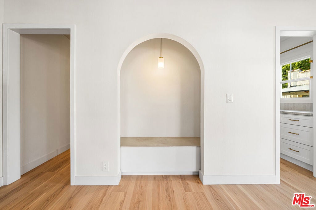 Welcome to Cypress Park Bungalows at 614 Romulo St, a thoughtfully updated bungalow-style residence in the heart of Cypress Park, designed with a cohesive Scandinavian aesthetic throughout. This light-filled unit features 1 bedroom plus a detached bungalow office, 1 bathroom, and approximately 714 sq ft of living space, all meticulously remodeled.The interior is calm, intentional, and unified by consistent new flooring throughout the living room, hallway, and bedroom, creating a seamless flow from room to room. Clean lines, soft neutral tones, and abundant natural light establish a warm, minimalist atmosphere that feels both modern and inviting.The open-concept living area connects effortlessly to the kitchen and dining spaces, encouraging relaxed everyday living and easy entertaining. The kitchen is finished with penny tile flooring, new appliances, a farmhouse sink, open shelving, and generous counter space, blending texture and simplicity in a way that feels distinctly Scandinavian. A thoughtfully designed Scandinavian-style vanity anchors the bathroom, paired with clean tile flooring and modern finishes for a fresh, composed feel.Comfort is supported by a new split-system AC unit, providing efficient, quiet climate control year-round. Dual-pane windows throughout the home enhance natural light and everyday comfort.A true standout feature is the detached bungalow space, privately assigned to this unit and designed as a versatile extension of the home. Ideal as a private office, creative studio, artist's retreat, fitness or workout space, or an intimate lounge for hosting friends, this flexible bungalow allows you to shape the space around your lifestyle while maintaining separation from the main residence.Situated on a 7,506 sq ft lot, the property offers breathing room rarely found in rental homes. Parking is convenient with a shared driveway accommodating multiple vehicles, plus one reserved parking space for this unit.Located in vibrant Cypress Park, this home sits within one of Northeast Los Angeles' most desirable and evolving neighborhoods, known for its creative energy, modern sensibility, and strong sense of community. With easy access to Highland Park, Glassell Park, Downtown LA, and major freeways, the location offers both connectivity and a relaxed neighborhood feel.A rare opportunity to lease a fully remodeled bungalow that delivers pure Scandinavian design, seamless interior flow, and a lifestyle rooted in simplicity, comfort, and modern Northeast LA living.