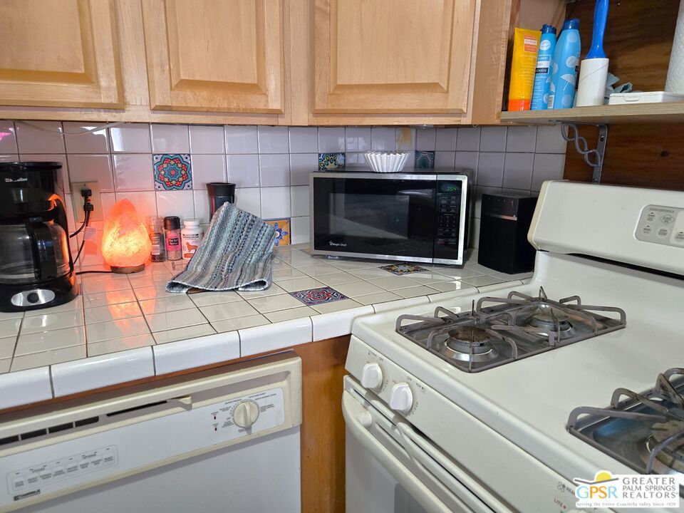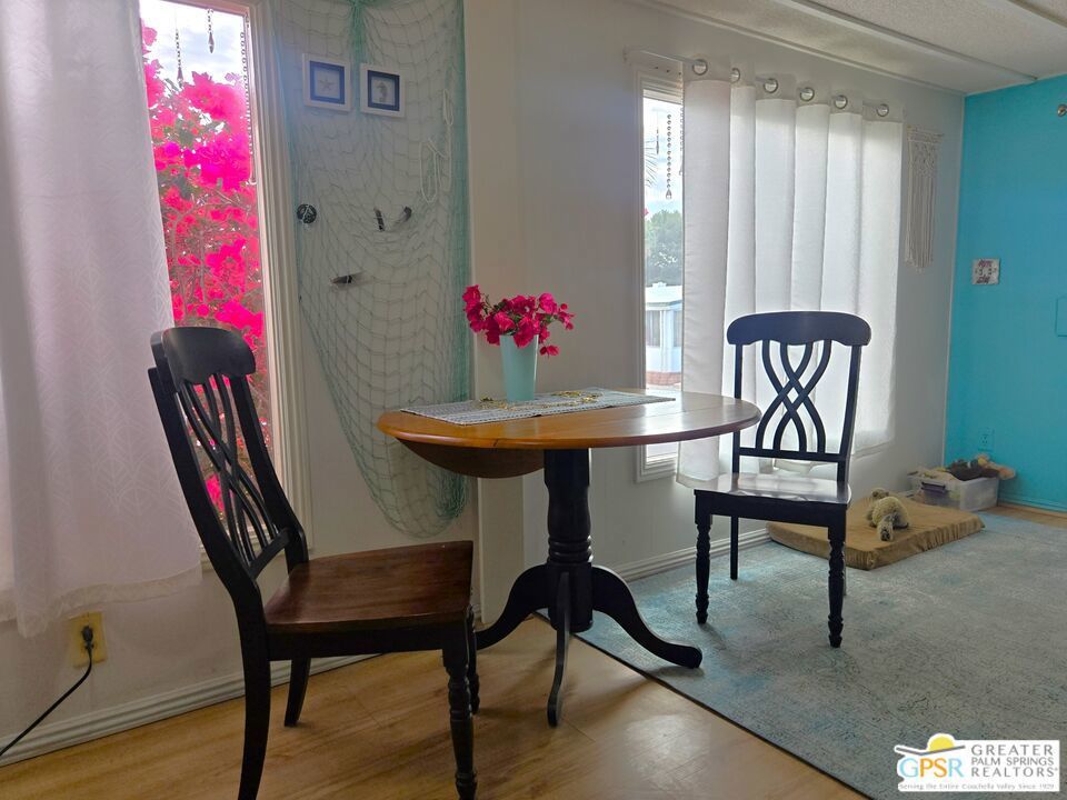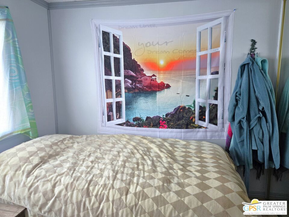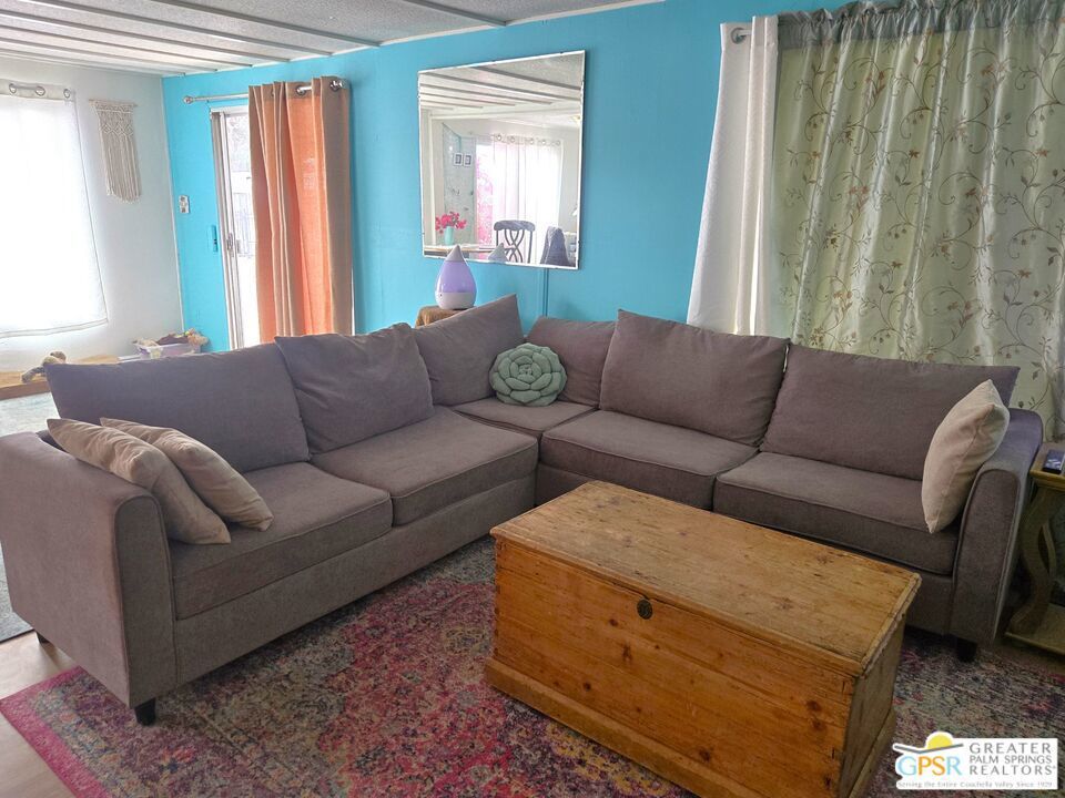 Simply a wonderful desert home! Two Bedroom, Two Bath home with a Bonus Room added just off of the Master. You have just the right sized cozy space inside, and an immense outdoor rear area to stamp with your own style. Views of Mounts San Jacinto and San Gorgonio, and the Banning Pass await you outside. With easy access to nearby conveniences and attractions in the Coachella Valley, residents enjoy the accessibility of city living amenities while still being able to enjoy country tranquility. This 2 Bedroom, 2 Bath home that is just the right size at 854 SF is located in the North and Central section of Desert Crest Country Club, and is just down the way from both the Par-3 Golf Course and the Clubhouse with natural mineral spring water Pool & Spas. Whether you are looking for a permanent residence or a vacation home, this property offers the perfect combination of comfort, convenience, and charm. Parking is amazing with both a covered Carport and an additional parking Driveway. Coming inside the direct access Entry Doorway into the Living Room you enjoy an open living concept across the front of the home, with large Windows and the Slider Door Entry giving lots of natural lighting. The Kitchen has great space to prepare to entertain your family and guests, with a wraparound Breakfast Bar central area and tile countertops done right with custom tile inserts. Full cooking facilities are available in the Kitchen including the natural gas Range, Dishwasher and spacious Refrigerator completing what you need to entertain. You have great separation of public and personal spaces. The ensuite Master Bedroom & Bath has just what you need with the addition of a downstairs Bonus Room enlarging the space, and the second Bedroom and Bath are comfy and cozy. The Rear Yard is a blank slate ready for you to realize your dream of relaxing in privacy. Desert Crest Country Club is a wonderfully Active 55+ Community that provides all the activities you want. The Desert Crest Country Club community boasts a 9-hole par-3 golf course, inviting residents to enjoy free leisurely rounds amid the picturesque setting of pond and mature trees that boast views of Mounts San Jacinto and San Gorgonio and the iconic windmills of the Banning Pass. This oasis extends beyond the golf course. Residents here enjoy a multi-faceted Clubhouse featuring a healthy mineral water Pool and Spas, providing a serene escape and a hub for plenty of social connections. Indoor Shuffleboard and other activities are a welcome diversion here at the Clubhouse, with many interior facilities to keep you moving and fit. The onsite cafe caters to culinary cravings, the dog groomers attend to furry companions, and the real estate office ensures all needs are met with ease. These conveniences foster not just a residence but a sense of belonging within a home and community bound by shared experiences and vibrant camaraderie. This home represents a harmonious blend of comfort, style, and functionality, creating a delightfully private haven within the heart of Desert Crest Country Club. Whether indulging in a round of golf, luxuriating in the mineral water pool, playing shuffleboard, or simply savoring the serenity of the surroundings from your very private rear deck, this property offers a unique and fulfilling 55+ living experience, where every moment is the essence of a life well-lived!
