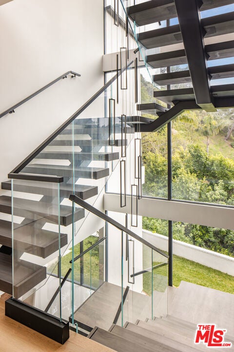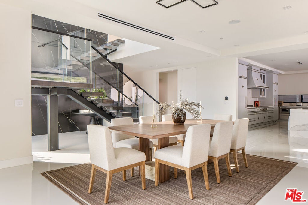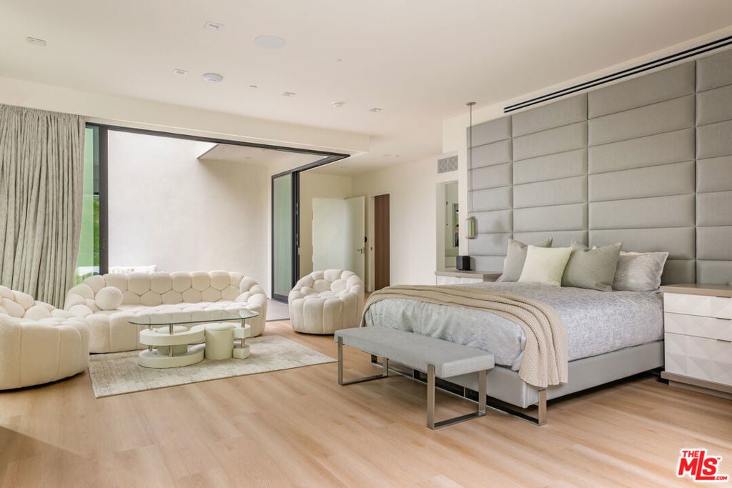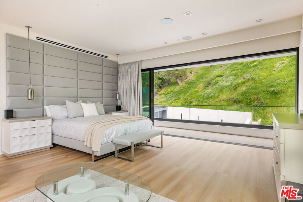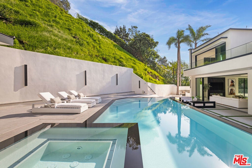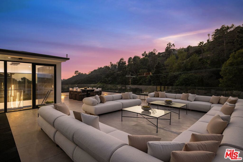 Nestled in the Bel Air hills, this newly constructed modern home by Gispan Design combines elevated luxury living with timeless sophisticated elements and contemporary designs to meet every discerning homebuyers desires. The 10 ft. pivot entry door exposes an open and airy floor plan with soaring ceilings and natural light from every angle. The home spans nearly 5,000 SQFT and seamlessly merges indoor-outdoor living while simultaneously showcasing the natural setting, creating a warm and inviting atmosphere designed for grand scale entertaining. Premium polished porcelain tile flooring throughout leads the way to the state of the art custom kitchen that includes a custom handcrafted luxury cooking range and hood, and tailor made stainless steel cabinetry by L'Atelier Paris Haute Design. All surrounded by Porcelain countertops, oversized island, and Gaggenau luxury home appliances to create the ultimate gourmet chef's kitchen. Floor to ceiling disappearing Fleetwood sliding doors from both kitchen and living room open to a stunning custom zero edge infinity pool and jacuzzi, along with a Hestan 36" built-in natural gas grill with built-in natural gas doubleside burners, and Gozney Hybrid Pizza oven. Rounding out the main level is a formal dining room, living room, home theater with 4K HDR LED smart home projector and Italian leather seating, ensuite bedroom for family and guests, and home office which can double as maids quarters for privacy and convenience. Featuring 4 large bedrooms and 4 bathrooms, the second floor offers a sanctuary like experience that emphasizes serenity without losing the integrity of our connection to nature. Views of the rolling hills all around the private balconies and Catalina sunset glimpses from the private side den off the primary offer up an unmatched living experience. The primary retreat entails 2 private balconies with separate facing views, walk-in closet and lavish bath that consists of a soaker tub, large glass enclosed shower comprised of Bookmatched Onyx green polished porcelain, and double sinks with a vanity area. Additionally, you will find three ensuite bedrooms, a laundry room, and side den with views to the ocean. Bonus stairs lead to a 1500 sq. ft. of rooftop deck that includes lounge area with non slip tiles and home gym with black rubber flooring. Top-tier amenities include custom-built wildfire defense sprinkler system, UniFi Home Security Camera System, home audio distribution system using UniFi Amps with in-ceiling speakers throughout, two car finished garage, smart home features, and Starlink satellite with added access points. Conveniently located near the highly acclaimed Roscomare Elementary School, and within close proximity to the valley and Westside.