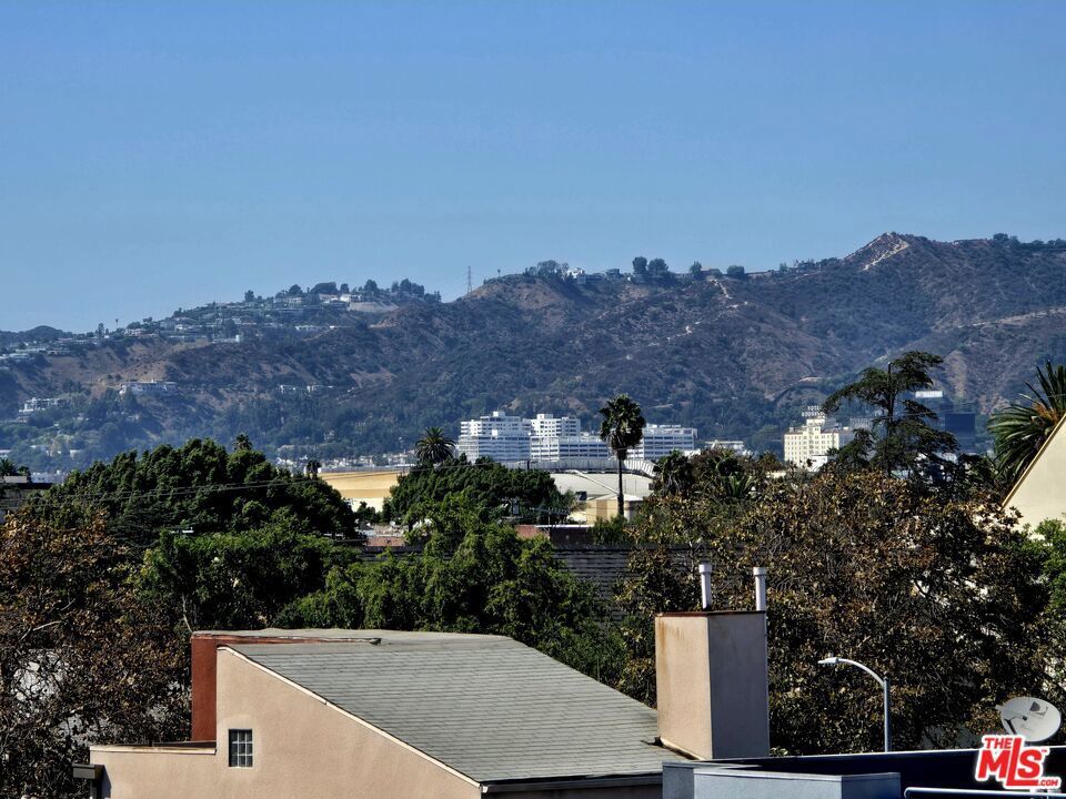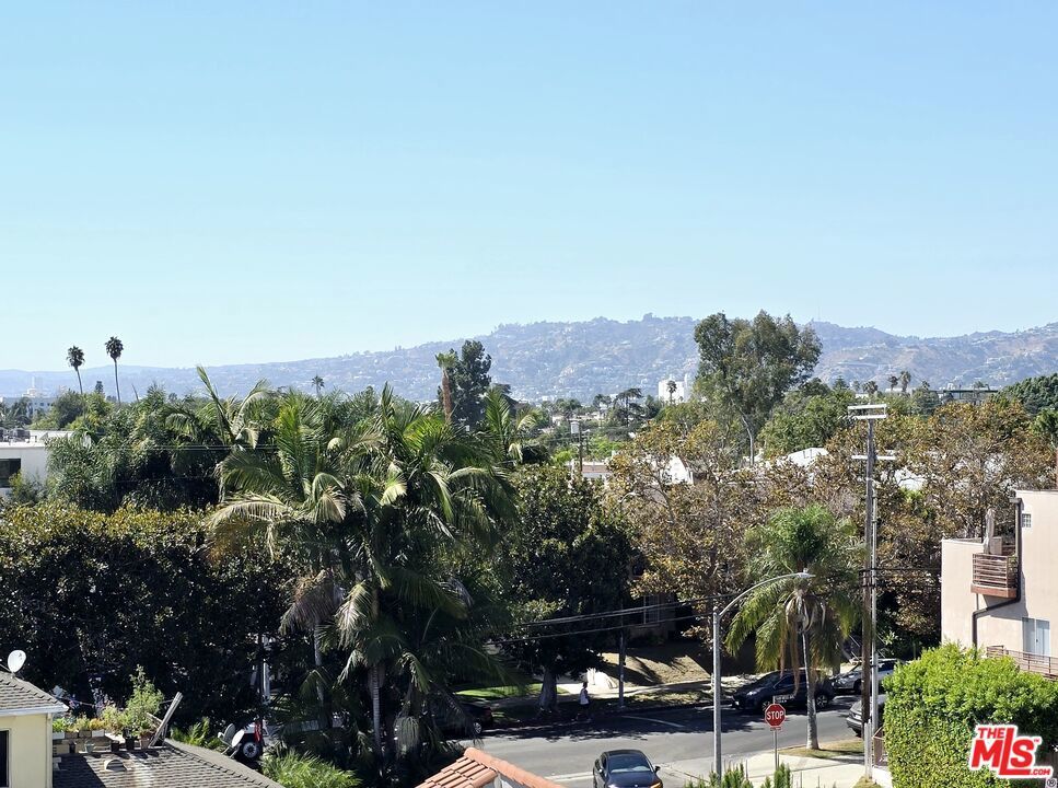 Top floor penthouse unit with a spacious floorplan, private balcony and west facing views of the Hollywood Hills. This large 2 bedroom and 2 full bath unit has separated bedrooms great for a guest bedroom or office. Both bedrooms have walk-in closets. Modern concept kitchen features stainless steel appliances, Caesarstone countertop and glass tile backsplashes. Recessed lighting, beautiful flooring, hotel-like bathrooms, and washer/dryer in unit. Two tandem parking spaces in a secure gated garage. EV charging available. Bicycle storage in the garage. Small pets allowed. Convenient to Larchmont Village and Hollywood.