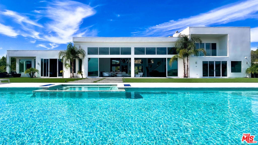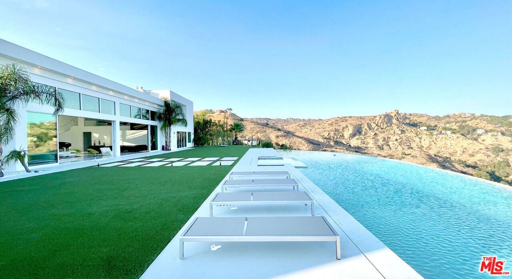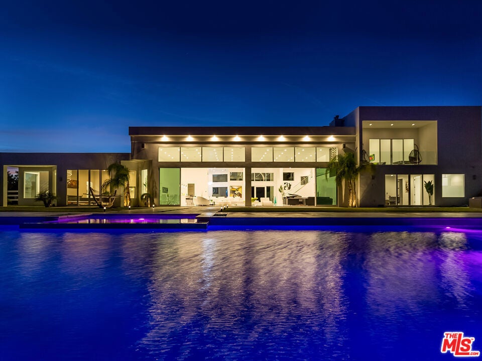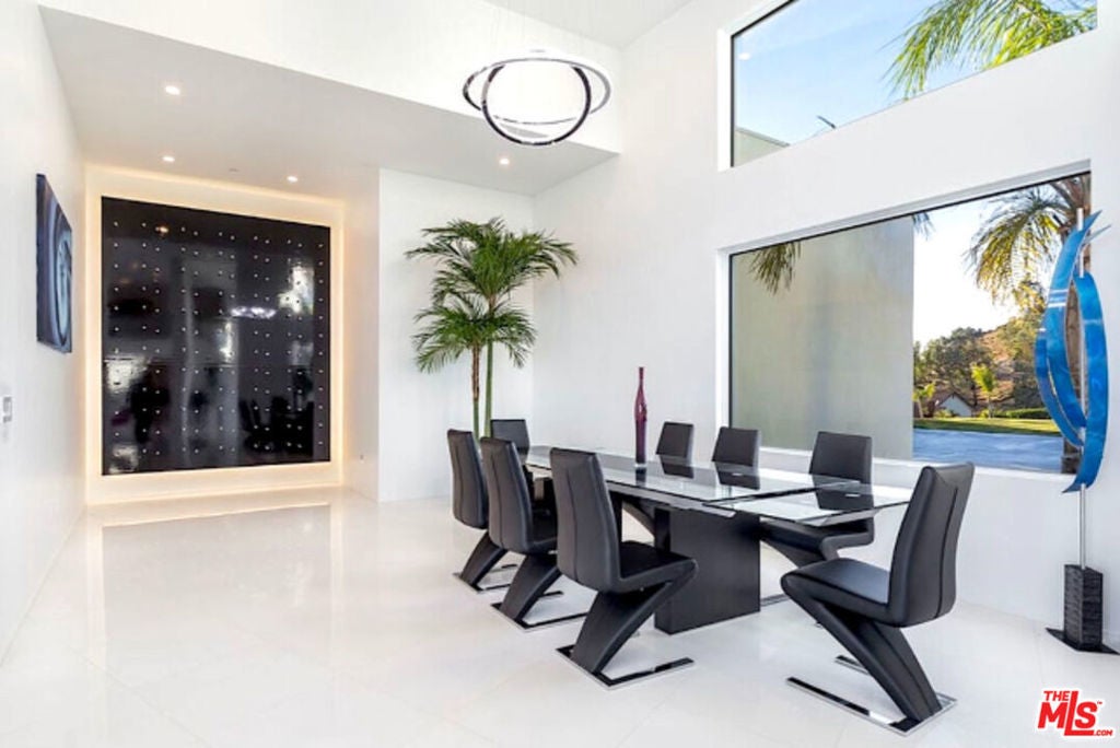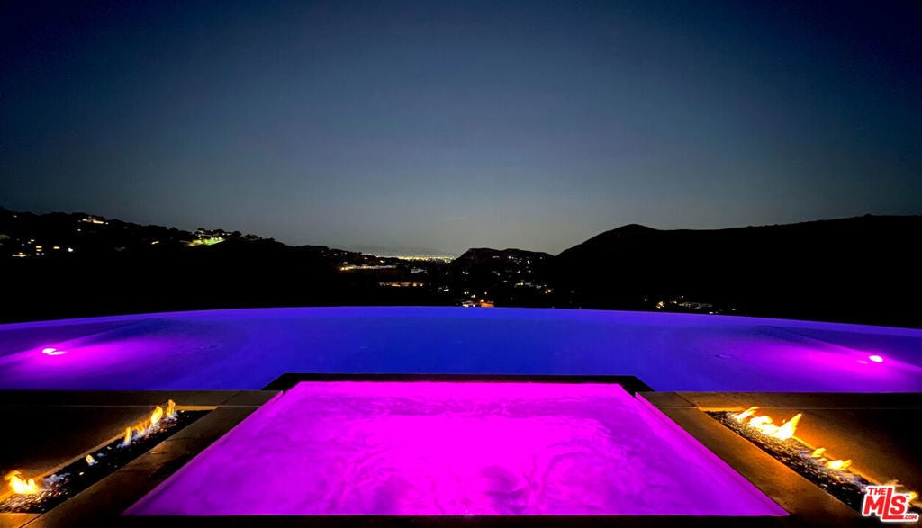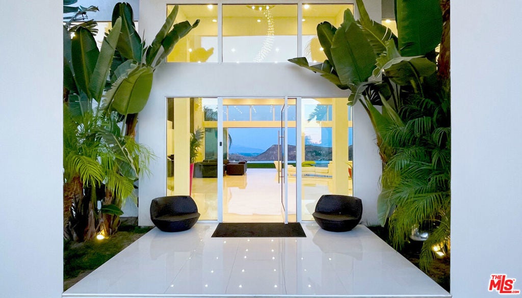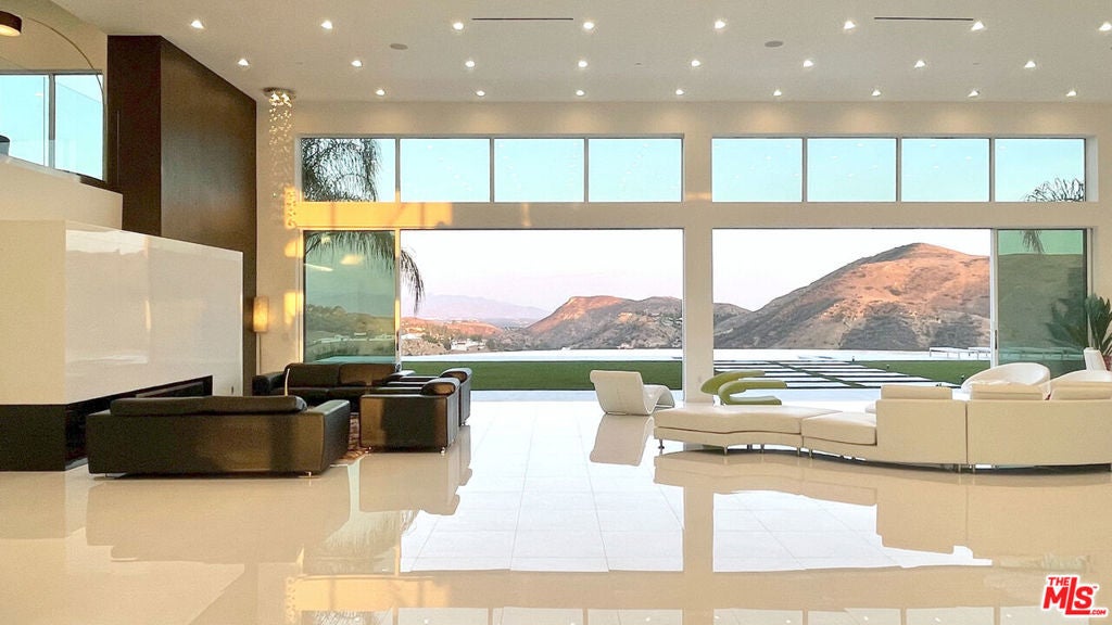 Perched on what feels like a private hillside retreat, this impeccably designed modern residence offers a rare blend of seclusion, sophistication, and sweeping views. The home showcases a state-of-the-art chef's kitchen featuring an oversized Caesarstone island, custom cabinetry, Miele cooktop, oven and speed oven, three warming drawers, a Thermador refrigerator and freezer, and a built-in espresso maker. Entertain in style in the formal dining room, highlighted by a dramatic, glass-enclosed, full-wall wine display. An oversized fireplace anchors the living space, while the primary suite rivals a five-star resort with a luxurious soaking tub, custom stone accent walls, sitting area, walk-in closet, and automatic shades. A theater-quality media room is fully equipped with a projector, advanced AV system, and acoustic treatment for an immersive experience. Additional highlights include soaring ceilings, energy-efficient windows and glass doors, and a true smart-home system wired for Wink and Nest. With ideal east-west exposure, the property invites you to unwind from the day and savor both the beautifully designed grounds and unforgettable sunsets.