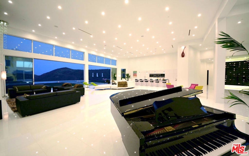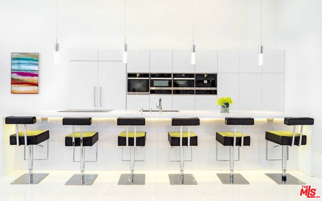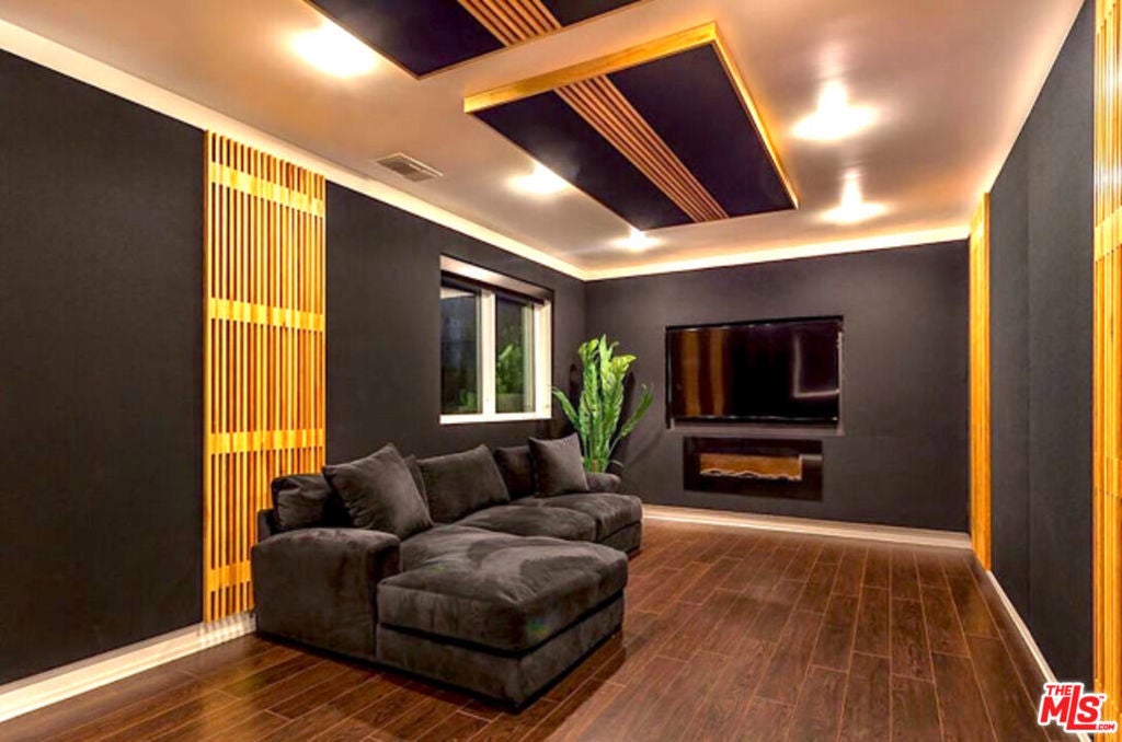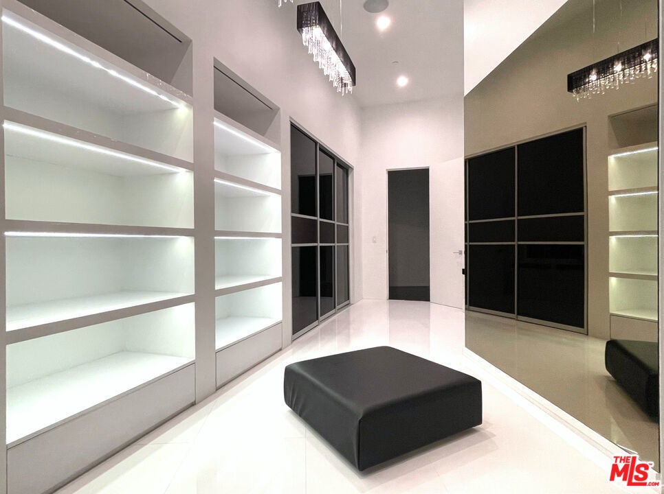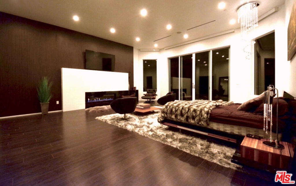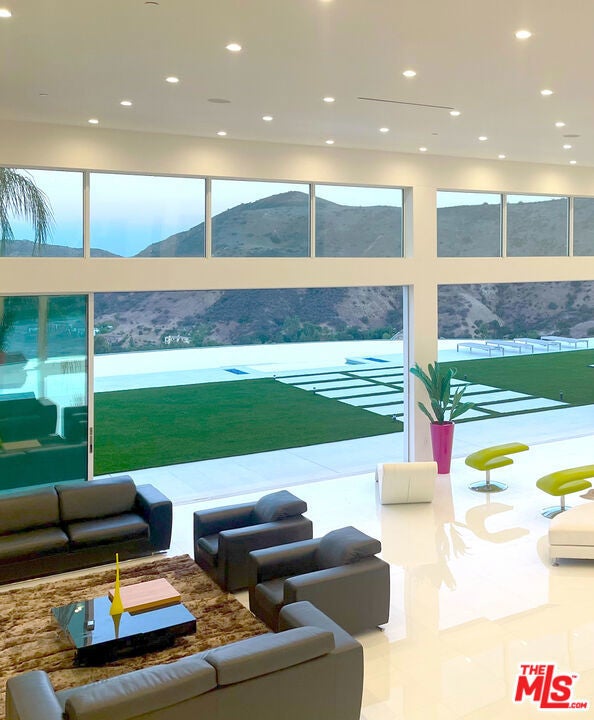 Perched on what feels like a private hillside retreat, this impeccably designed modern residence offers a rare blend of seclusion, sophistication, and sweeping views. The home showcases a state-of-the-art chef's kitchen featuring an oversized Caesarstone island, custom cabinetry, Miele cooktop, oven and speed oven, three warming drawers, a Thermador refrigerator and freezer, and a built-in espresso maker. Entertain in style in the formal dining room, highlighted by a dramatic, glass-enclosed, full-wall wine display. An oversized fireplace anchors the living space, while the primary suite rivals a five-star resort with a luxurious soaking tub, custom stone accent walls, sitting area, walk-in closet, and automatic shades. A theater-quality media room is fully equipped with a projector, advanced AV system, and acoustic treatment for an immersive experience. Additional highlights include soaring ceilings, energy-efficient windows and glass doors, and a true smart-home system wired for Wink and Nest. With ideal east-west exposure, the property invites you to unwind from the day and savor both the beautifully designed grounds and unforgettable sunsets.