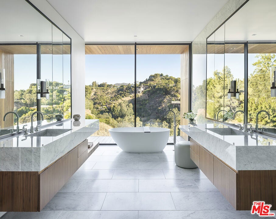 The Ultimate in California Lifestyle. Exceptional Modern Jewel in the heart of prime Pacific Palisades Riviera. Recently built by Tyler Construction using the highest quality materials, executed to a standard that is on par with world class museums. Wood, steel, stone come together in a warm and timeless design. Interiors by James Magni and architecture by Russell Shubin. Over 7,700sqft of impeccable detail. Elements include: floating walnut staircase, limestone throughout and slatted Afromosia wood. 5 bedrooms, 7 baths. Primary suite is a world apart. Screening room with full bar. Incredible Gourmet kitchen adjacent to vast great room walls of glass open to infinity edge pool and beyond. Detached gym/guest suite with en suite, kitchenette and separate entrance. A rare offering. Shown only to prequalified buyers.