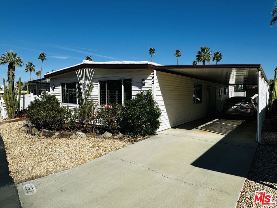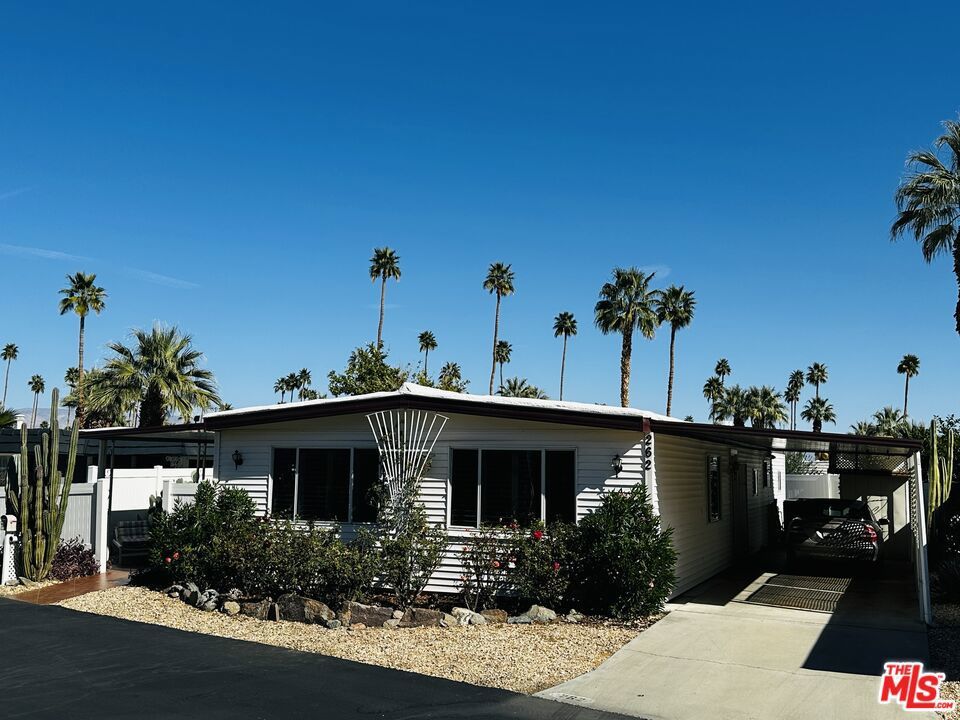 Welcome to 262 Costa Mesa - a large, fully furnished double-wide in a secluded, quiet area of fun & funky Safari Park! With 1,440 square feet of living space, this home has been well cared for and meticulously maintained. It features two bedrooms & two en-suite baths, a large living room, a formal dining room w/ built-ins, family room / den area, updated kitchen w/ all appliances (including a brand new dishwasher), laundry room with washer & dryer, plenty of closet space, sliding glass doors to a private, fenced patio & back yard, two-car carport, two storage sheds (one functions as a workshop), central heat & air conditioning, dual pane windows, insulated exterior walls... There's even an in-ground, flowing stream! And talk about affordability! The lot rent is well below the average for the Coachella Valley - at just $754.75 per month ($799.28 including water, sewer & trash). Safari Park is a 55+ community. Park approval required for residency. Sorry, Safari Park does not allow rentals. This one is priced to move. Schedule your tour today!