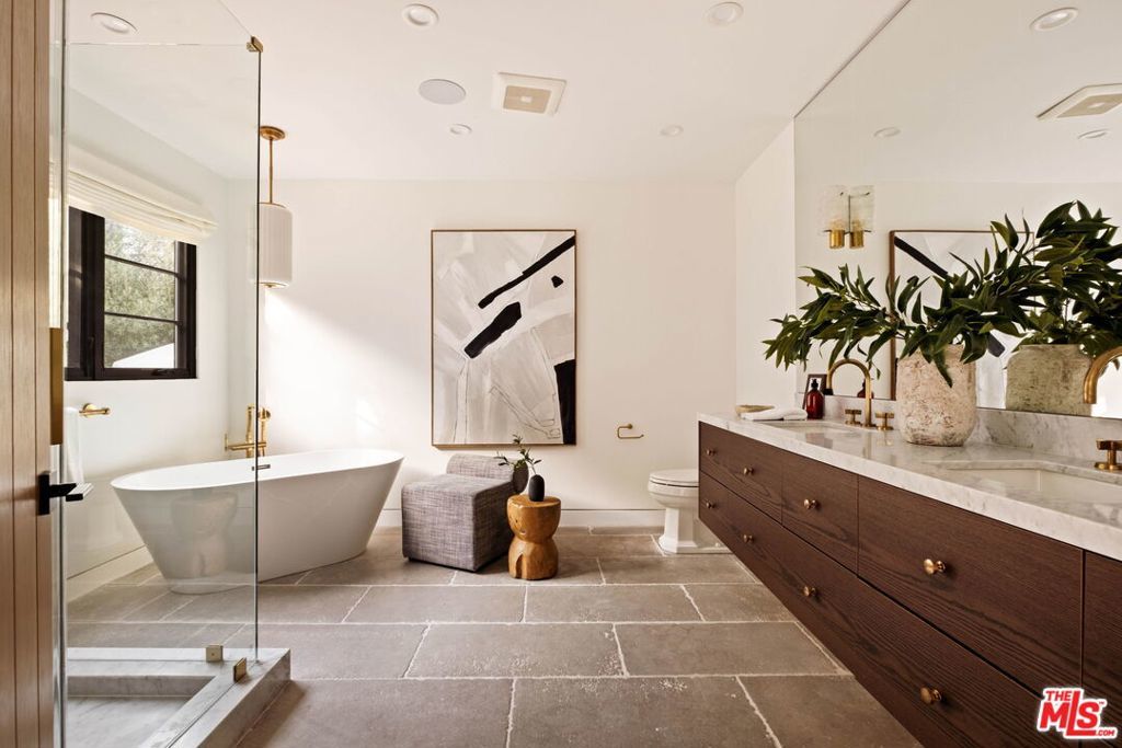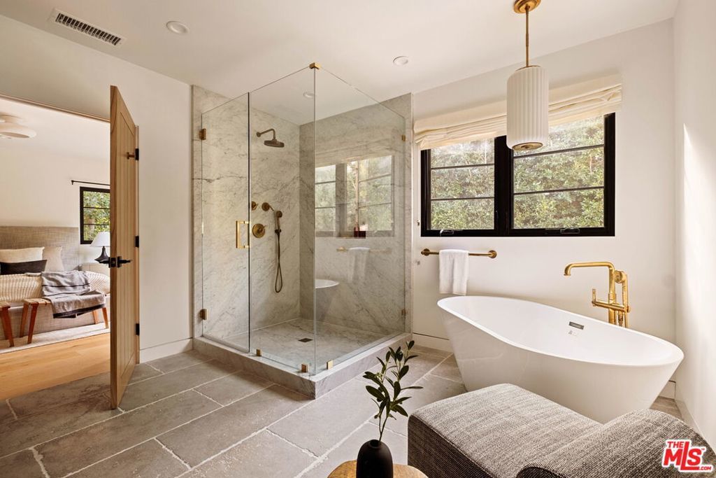 Completely reimagined from the ground up, this single-level Spanish-style home offers approx. 3,300 sq. ft. of refined living with a seamless blend of timeless character and modern luxury. Designer finishes include Arabescato marble, limestone, and handcrafted Moroccan Zellige tile. The ideal floor plan features three spacious bedroom suites, each with walk-in closets and custom cabinetry. Outside, a private oasis awaits with a newly designed swimmer's pool, outdoor kitchen, and 100-year-old olive trees. Located steps from Catch, Alfred Coffee, and the Melrose Place Farmers Market this is the ultimate in luxury and location.
