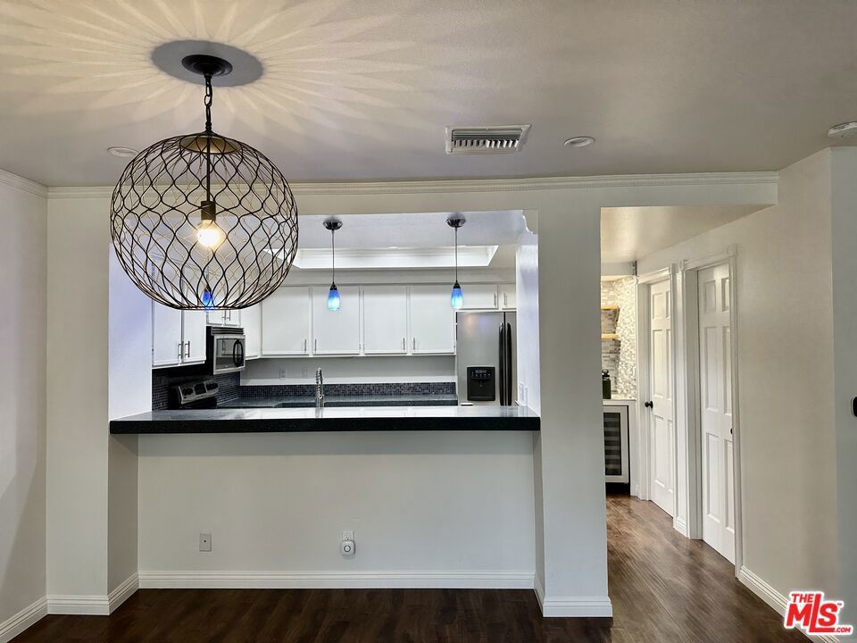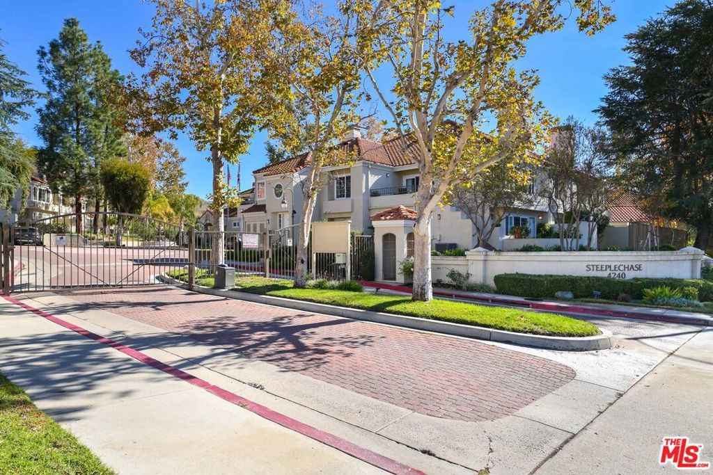 Experience elevated living in this newly updated, freshly painted two-story condominium located in the sought-after, gated Steeplechase community of Calabasas. Featuring the largest floor plan in the complex, this 2-bedroom, 2.5-bath residence offers 1,385 sq ft of open, light-filled living space designed for both comfort and entertaining. The main level showcases a welcoming family room with a cozy fireplace, soaring ceilings, and recessed lighting, flowing seamlessly into the dining area and a well-appointed kitchen with granite countertops, stainless steel appliances, and a wine refrigerator. A private patio provides the perfect space for outdoor dining or relaxation, while additional highlights include a guest powder room, an in-unit laundry room, and a two-car garage with direct access. Upstairs, two spacious en-suite bedrooms feature vaulted ceilings, including a generous primary suite with a walk-in closet and a beautifully updated bathroom. Recent upgrades throughout the home include laminate flooring, solid wood doors, double-pane windows, recessed lighting, a newer AC unit and water heater, and a smart Ecobee thermostat. The Steeplechase community offers resort-style amenities such as two pools and spas, a fitness center, sauna, clubhouse, playground, and scenic walking paths with mountain views, all conveniently located near shopping, dining, and outdoor recreation at Malibu Creek State Park and just nine miles from the beaches of Malibu. Situated within an award-winning school district, this is a rare lease opportunity in one of Calabasas' most desirable communities. Don't miss it!