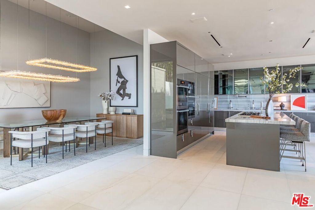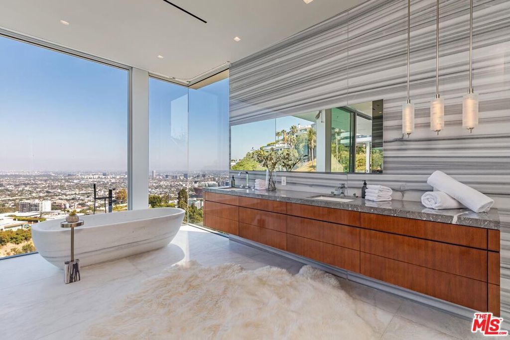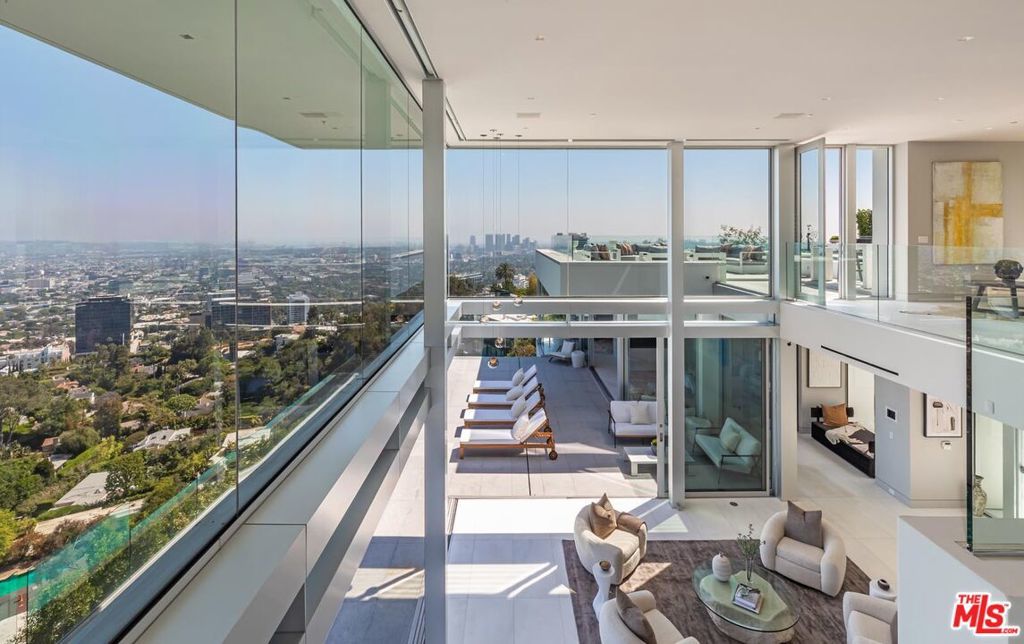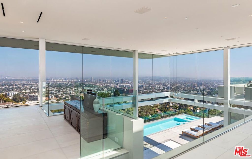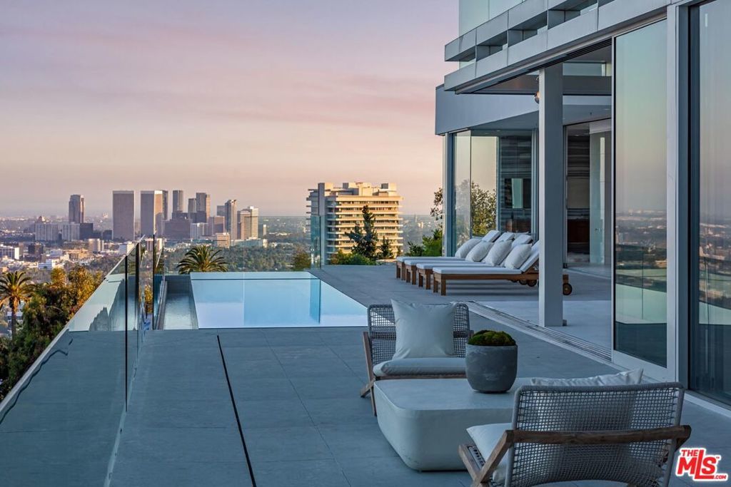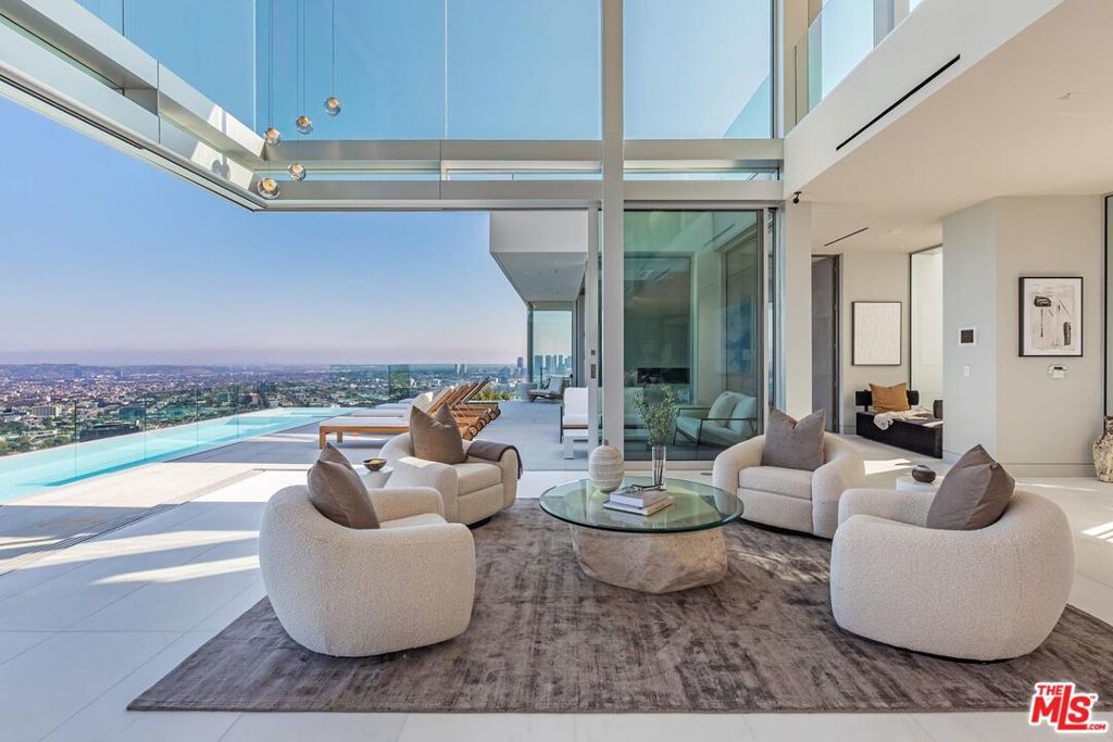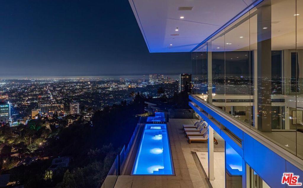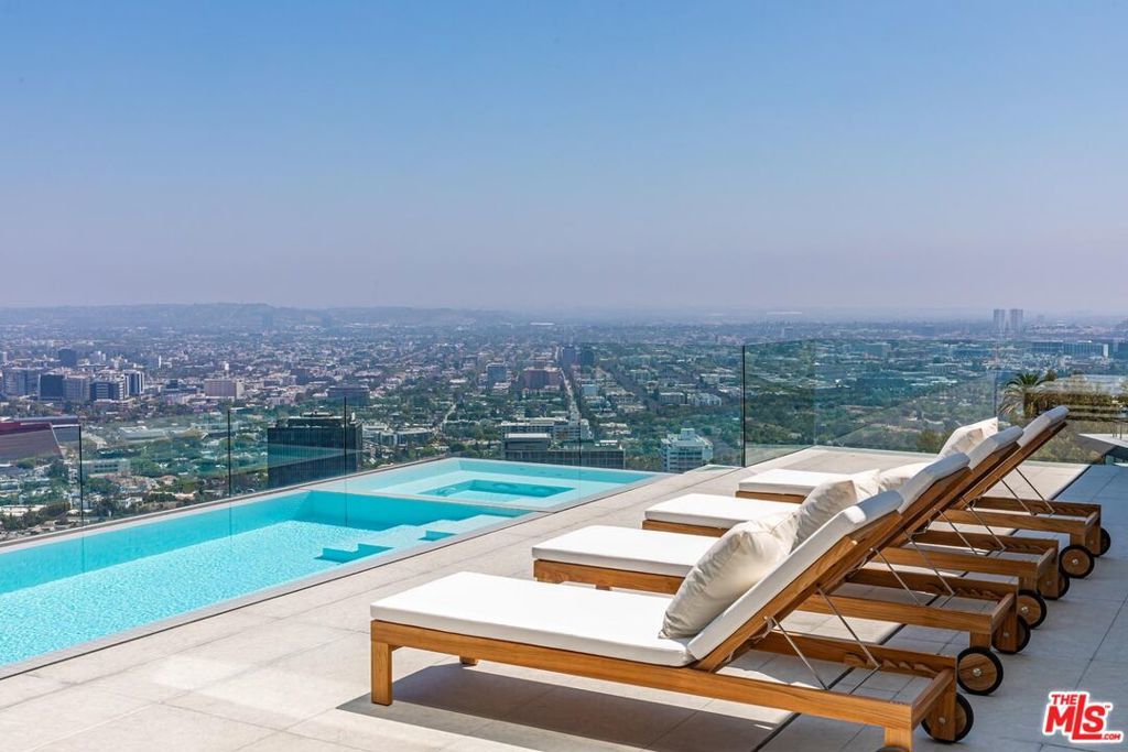 Consisting of only 15 properties, the "Front Row" is the ultimate Bird Streets location delivering unobstructed jetliner views from a dramatic Ridgeline perch only five minutes from Sunset Blvd. Cinematic, bold, and confident, the vistas wrap from Downtown Los Angeles to the Pacific Ocean. Enter a soaring double-height living room off the private front courtyard with waterfall and peer out over an epic zero-edge infinity pool that floats in the dazzling view. Features of this 8,700-square-foot showplace include a massive cinema, large office/gym, three spacious guest suites, elevator, wine cellar, bar, formal dining room, gourmet kitchen with adjacent entertaining area and six-car parking. Multiple terraces provide hosting opportunities for large-scale events. A rare offering for the buyer who appreciates and requires the finest location and views.