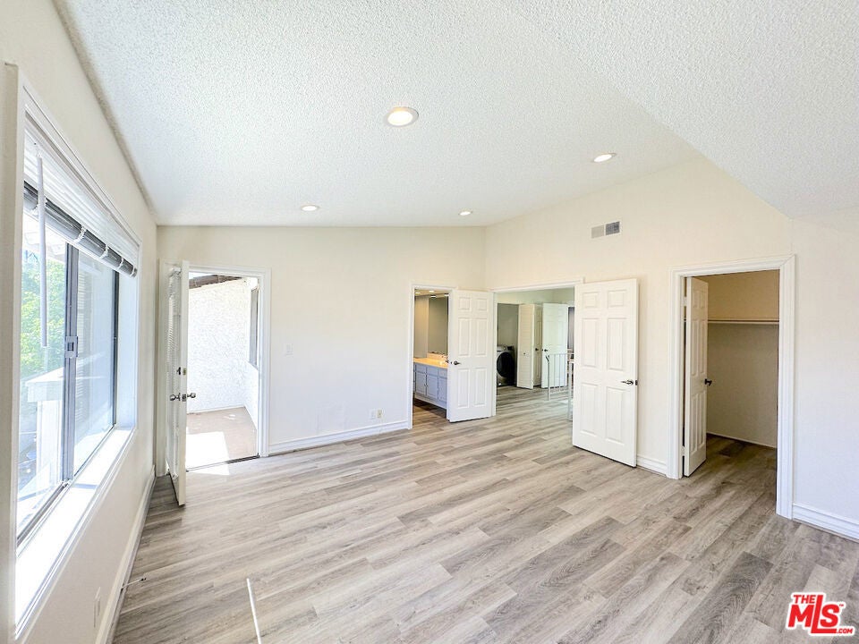 Experience the perfect blend of privacy and sophistication in this rarely available Greenbriar townhome-style residence. Tucked away at the end of a quiet, oak-shaded cul-de-sac, this 2-bedroom, 2.5-bathroom home offers 1,373 square feet of light-filled living space designed for both comfort and entertaining. A classic fireplace anchors the expansive living room, creating an immediate sense of scale and warmth. The open-concept layout transitions seamlessly into a modern kitchen featuring stone countertops and a breakfast bar, while double doors lead to a generous, enclosed private patio, an ideal sanctuary for al fresco dining. The upper level is thoughtfully configured with dual primary suites, each boasting soaring vaulted ceilings, ample closet space, and private en-suite baths. Residents enjoy an attached two-car garage with direct interior access, upper-level laundry convenience, and the peace of mind provided by central HVAC. Located just steps from the sparkling community pool and spa, and minutes from Thousand Oaks' premier shopping and dining, this home offers a turnkey lifestyle in the heart of the Conejo Valley.
