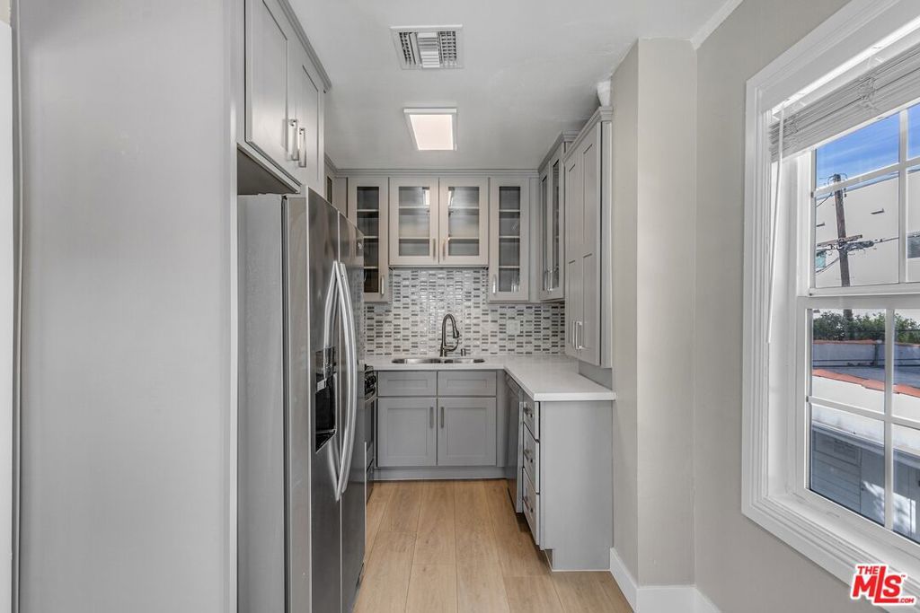 Welcome to this charming top-floor 2BR/1BA, nestled in an unbeatable location near Pico-Robertson! With Little Ethiopia, The Grove, and Museum Row just minutes away, you'll be immersed in some of LA's best dining, shopping, and cultural attractions. Lush sidewalks lined with palm trees give the area its quintessential Los Angeles feel, and this intimate 12-unit building (split between two separate structures) offers a cozy community vibe. Step inside and fall in love! The front door complete with a vintage peephole opens into a sun-filled living space with large windows, recessed lighting, and central A/C & heat to keep you comfortable year-round. The stylish kitchen is a chef's dream, featuring stainless steel appliances, a double-door fridge with built-in water and ice dispensers, elegant glass-front cabinetry, and a trendy backsplash. There's even space for a cozy breakfast nook, perfect for sipping your morning coffee while soaking in the natural light from two bright windows. Down the hall, you'll find built-in storage for extra convenience. The two bedrooms both feature closets one even has a walk-in! While the updated bathroom boasts a sleek subway-tiled shower/bath combo and a window ideal for your favorite humidity-loving plant. Don't miss your chance to live in this prime LA locationschedule a tour today!