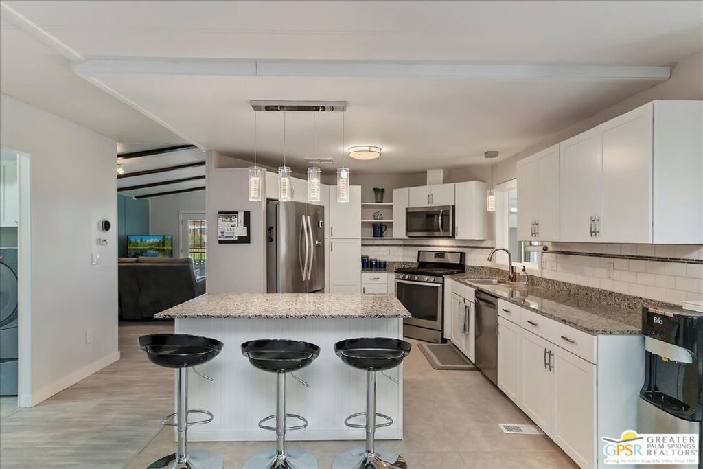 Beautifully remodeled triple-wide home in the desirable 55+ section of Tri Palms Country Club! This spacious 2 bed, 2 bath residence features a gourmet kitchen, large laundry room, sunroom, and a versatile family/game room. The oversized L-shaped patio, designed with multiple conversation areas including space for a firepit, offers stunning mountain and golf course views perfect for entertaining or relaxing at sunset. Tasteful decor and thoughtful upgrades make this home move-in ready, and it is being sold mostly furnished (list available from agent; additional items may be purchased outside escrow). Two storage sheds are included, along with citrus trees that enhance the outdoor charm. Low HOA dues ($172/yr) and monthly club fees ($334.41/mo) include unlimited golf for two owners plus access to pools, spas, tennis, pickleball, and shuffleboard courts, as well as the clubhouse, restaurant, and a variety of social activities. Best of all, you OWN the land in Tri Palms! Conveniently located near shopping, dining, casinos, Costco, and world-class medical facilities. Eligible for conventional financing. Welcome home!