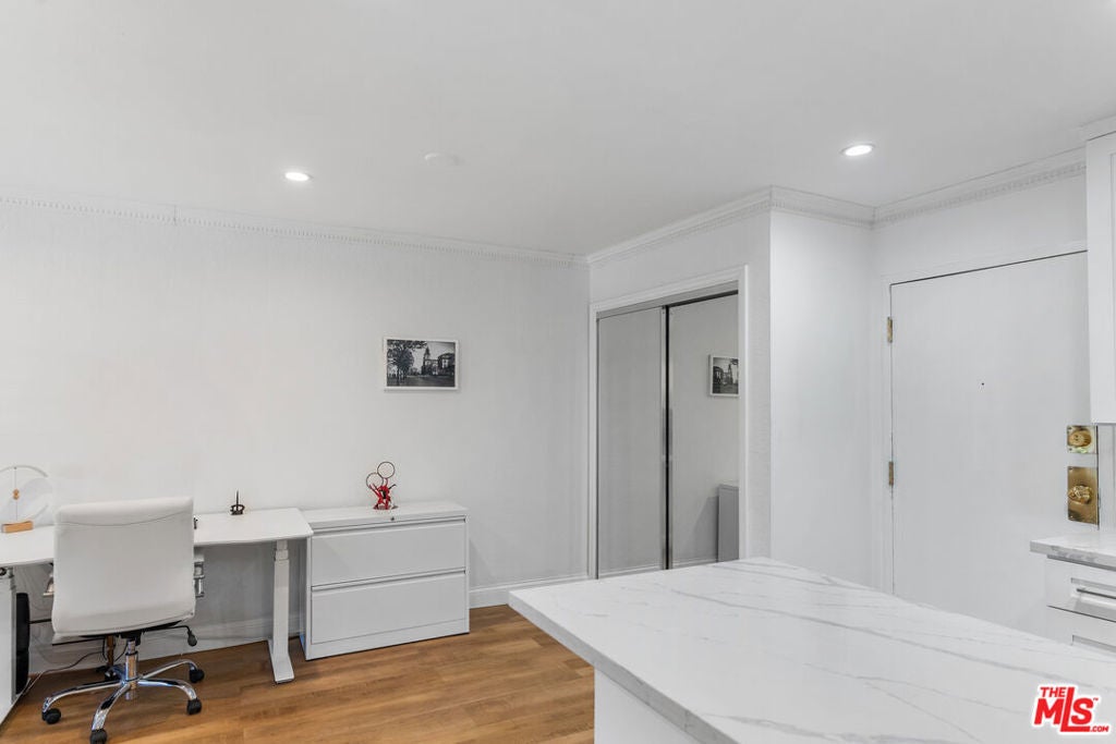 Beautifully Remodeled in a great (Sunset/Labrea) location, this unit is Move-In Ready!! The rent price of$2999.00 includes all bills except electric. Just look at the pics! New Modern Kitchen, Bathroom, Cabinets, Flooring and more. Oversized Balcony, East Facing for ample light and palm trees lined view...Residence is located in the heart of prime West Hollywood / Hollywood, close proximity to all your errands and main Worldwide attractions. Step into a beautifully designed contemporary unit where natural light floods through directly from the East, highlighting the sleek modern wood like flooring and open-concept layout. The expansive kitchen flows seamlessly into a stunning living room featuring quartz countertops, modern cabinetry, and stainless steel appliances including a dish washer. Recessed lighting throughout enhances the clean, modern design, while the extra office space offers ultimate convenience of working from home or use as dinning area. Bedroom is spacious with ample closets and storage space. The bathroom feature elegant modern finishes, including a beautifully tiled shower and excellent lighting. Additional perks include generous pantry and closet storage, plus covered, garage parking for 2 cars (assigned). Be among the first to live in this condo, schedule a tour before it's gone. Hollywood sign is visible, walk to Hollywood Blvd Stars, Runyon Canyon, Heimat Private Club/Gym, Kodak Center, Coffee Shops, Swanky Restaurants, Hotels and much more.