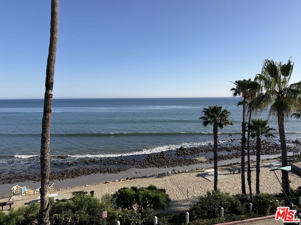 Stunning ocean views form this remodeled studio. Enjoy breath taking sunrises from your bed. Fall asleep to the smooth sounds of the waves. Resort style living at it's finest with tennis, gym, heated pool and spa, sauna, BBQ's on the beach, volleyball net and a great surf spot! Fabulous shopping, world class dining and hiking nearby. Only three miles to Pepperdine University. Live the dream in Malibu!