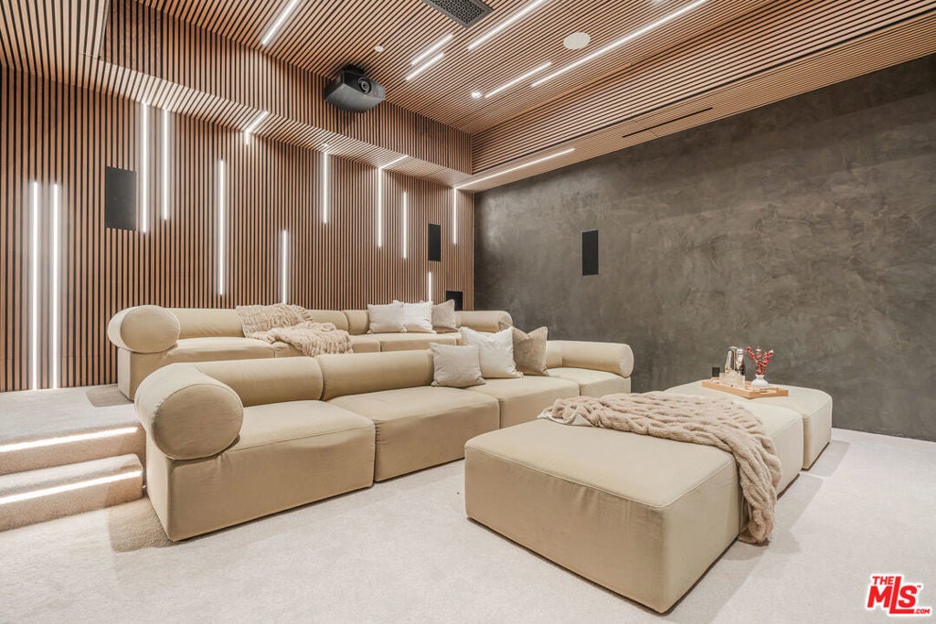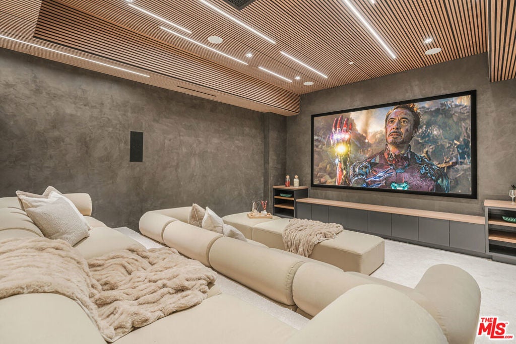 Welcome to an extraordinary new-construction luxury estate offering approximately 8,889 square feet across three stories on an approximately 17,990 square foot lot (0.413 acres), designed for elevated everyday living and effortless entertaining. Behind full-height modern privacy gates, the residence makes a striking first impression with a sophisticated mix of light natural stone and smooth stucco, black-framed windows, warm architectural lighting, and a dramatic arched entry that delivers true gated estate curb appeal.Step into a grand foyer with soaring ceilings, where a stunning glass elevator becomes an architectural centerpiece and provides effortless access to every level. The entry flows into elegant formal living and dining rooms designed to impress. At the heart of the home is the show stopping chef's kitchen, created for everyday ease and entertaining, featuring expansive islands, Taj Mahal leathered marble countertops, a walk-in pantry, and a full secondary prep kitchen for catering-level functionality.On the main level, enjoy a private, design-forward screening room featuring tiered lounge seating, a projector-ready setup, dramatic acoustic wood-slat walls and ceiling, and integrated modern LED lighting for a true at-home cinema experience. For added comfort and privacy, the home offers four spacious secondary bedrooms, each with its own en-suite bathroom, ideal for family, guests, or a dedicated office.Outside, experience resort-style living with exceptional indoor-outdoor flow, a built-in BBQ area, and an outdoor fireplace, plus a top-level patio that adds an additional entertaining venue with elevated views and fresh-air lounge space.Retreat to the grand primary suite, highlighted by a limestone fireplace, crown molding, and a convenient beverage fridge. The spa-inspired primary bath rivals a five-star hotel with a steam shower, soaking tub, dual toilets, and a dedicated makeup station, leading to a massive boutique-style closet with an island.Completing the home is a rare street-level basement with potential to park up to six cars covered, an exceptional feature for collectors and added convenience.A rare opportunity to own a modern statement home where scale, luxury, privacy, and smart design come together beautifully.