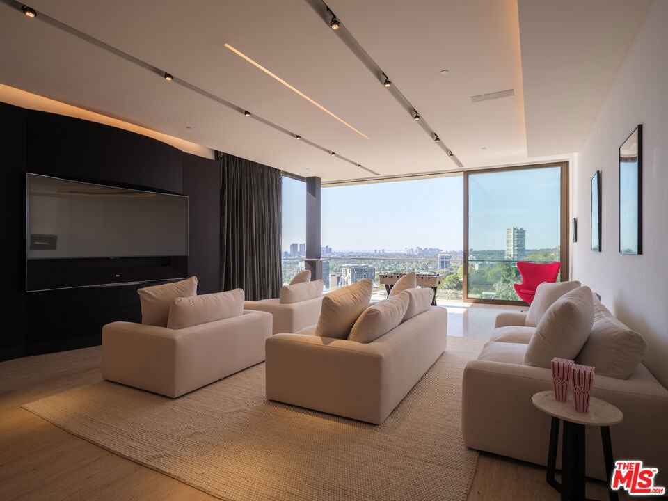 Perched above the city on a coveted promontory, 1305 Collingwood Place is a statement estate where architecture, technology, and sweeping views converge. Spanning approximately 11,800 square feet, this six-bedroom, seven-bathroom residence is designed for those who value scale, privacy, and effortless indoor-outdoor living. A dramatic retractable glass wall dissolves the boundary between inside and out, unveiling panoramic vistas stretching from Downtown Los Angeles to the Pacific Ocean. The expansive entertainer's deck functions as a private resort, complete with an infinity-edge pool, spa, fire feature, and built-in barbecue ideal for sunset gatherings or quiet mornings above the city. The primary suite occupies its own serene level, offering a private balcony with sweeping views, a spa-like bath with soaking tub, and dual walk-in closets creating a true retreat within the home. Additional amenities include a temperature-controlled wine cellar, media room, state-of-the-art gym, and spa and sauna accented with salt walls for ultimate relaxation. The residence is fully integrated with Savant smart-home technology, allowing seamless control of lighting, climate, and security throughout. A rare 20-foot, three-car garage with lift capability accommodates up to six vehicles, completing a property that effortlessly blends luxury, innovation, and livability. This is a rare opportunity to experience elevated Southern California living at its finest.