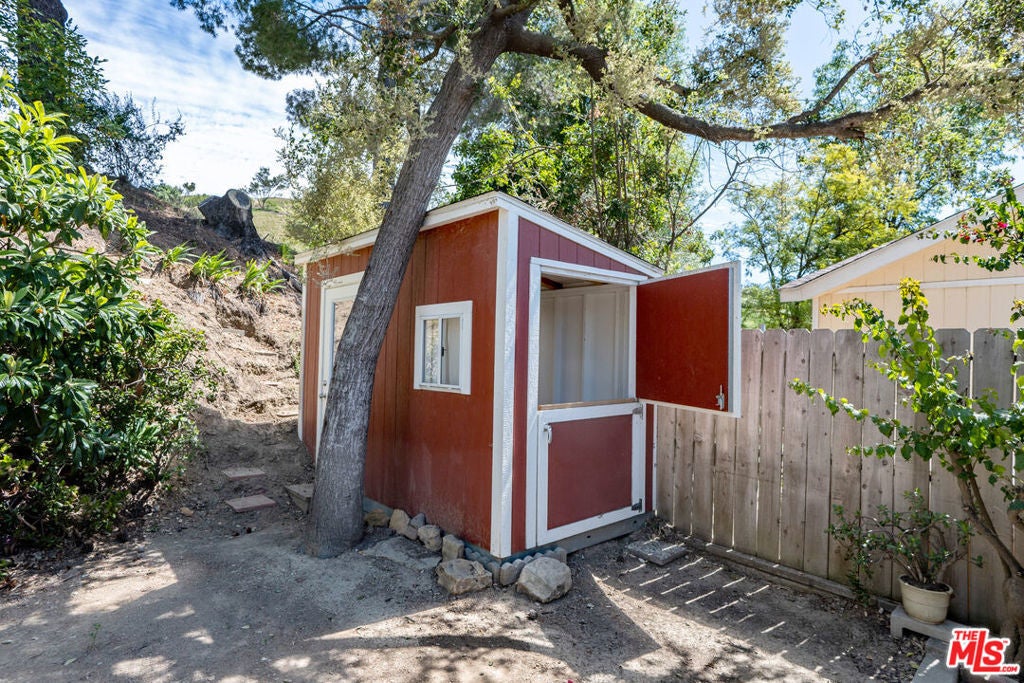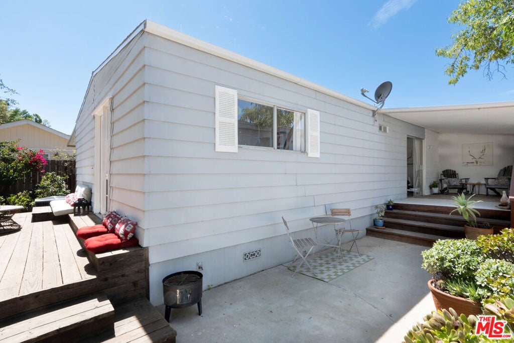 Tucked at the end of a quiet cul-de-sac in Top O'Topanga, 1183 Aztec sits in one of those rare pockets where things feel noticeably calmer and where the trailhead is quite literally out the back. Bordering the natural landscape of the Santa Monica Mountains, this 2-bedroom, 2-bath home leans into its surroundings: green, private, and just a little removed. It's the kind of setting that makes you want to spend more time outside than in. Originally built in 1973, this manufactured home offers a great layout with solid fundamentals and plenty of room to make it your own. Inside, the flow is easy and functional with an open plan, plantation shutters, and a defined dining area that invites gathering. A small bar nook adds personality, while the spacious primary suite includes a walk-in closet and private en-suite bath. It could benefit from some TLC and thoughtful updates, but the bones are there.The outdoor space is where things really open up. A woodsy patio feel, drought-tolerant landscaping, and enough room to shape into whatever you need garden, lounge, or something in between. Two sheds, including a barn-style structure, offer flexible space for storage, projects, or a quiet creative setup. Three covered carport spaces keep things practical. Top O'Topanga is one of those communities people tend to discover through word of mouth and then never want to leave. A gated, mountain-top enclave with a distinct personality, centered around a striking mid-century clubhouse recognized by the Los Angeles Conservancy for its architectural significance. Amenities include:* Pool and spa with wide-open valley views* Clubhouse with Library, Ballroom, Kitchen, Lounge spaces, Piano & billiard* Fitness room* Children's Playground & dog-friendly area* Laundry & car wash facilities* RV parking, on-site management & security presence* Walkable grounds with direct trail access. With recent upgrades to the community's core systems gas, electric, and water the groundwork has been thoughtfully improved for the years ahead. The inclusion of an assessor's parcel with a permanent foundation adds a unique layer of stability and ownership. short drive to the Valley w restaurants and shopping and just a hop from the shores of Malibu, the location strikes a rare balance: opportunities close when you need it, removed when you don't. A solid home in a standout setting with a great layout, usable outdoor space, and room to take it further.