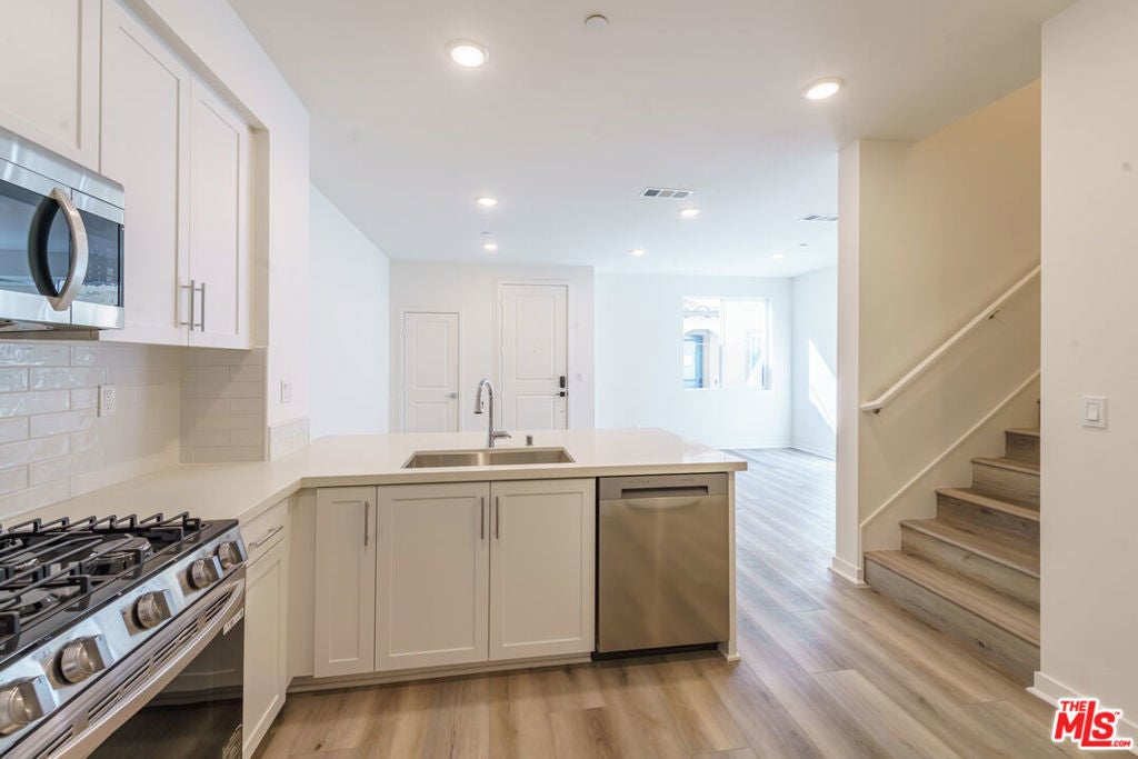 IMPROVED PRICING on a stunning move-in ready home with upgraded flooring throughout, a finished front space, and a generous common area for your pets. The Grove in West Covina offers a rare alternative to today's multi-level new construction. With fewer stairs and a highly functional layout, the home is designed for comfortable, practical living. The main level features an open layout connecting the kitchen, dining, and living areas, creating a natural flow for daily living and entertaining. The kitchen is finished with white shaker-style cabinetry, quartz countertops, a full tile backsplash, and gas appliances, delivering a clean and timeless aesthetic. Upstairs, the primary bedroom includes an ensuite bathroom and generous closet space. Two additional bedrooms provide flexibility for guests, home office use, or flexible space. This home features upgraded flooring throughout, no carpet anywhere! Unlike many new construction communities in the area, this home is part of a neighborhood without Mello-Roos, providing long-term value. Conveniently located near shopping, dining, and major commuter routes, The Grove presents a unique opportunity to own a completed new construction home in West Covina.