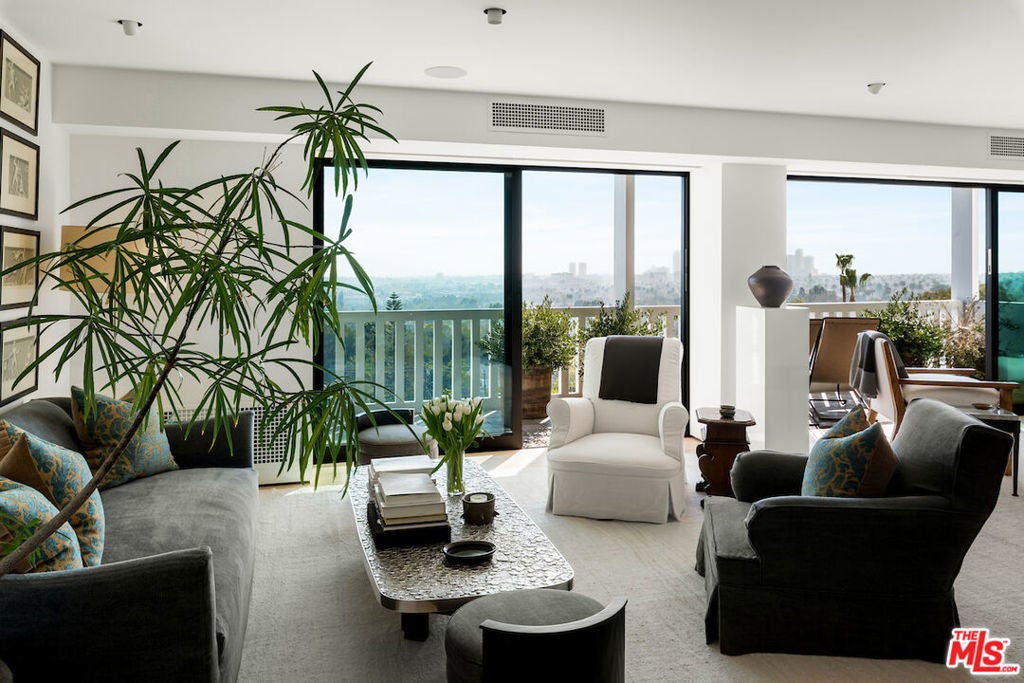 Welcome to the must luxurious unit at the iconic Doheny West Towers, with sweeping views from downtown to the ocean. Completely redone by Waldo Fernandez in collaboration with Clements Design, this is the largest one-bedroom unit in the building - offering an exceptional blend of size, sophistication, and style. The unit features massive balconies, multiple sitting areas, and an oversized primary bedroom, creating a layout that feels both spacious and inviting. Additional highlights include a powder bathroom, Fleetwood doors and windows with motorized shades, custom Lutron lighting, Gaggenau appliances, Waterworks fixtures and huge amounts of storage and closet space. Following a years-long, $8 million renovation, the building now boasts upgraded amenities and beautifully redone common areas, far nicer than any other building in the area. Situated just below Sunset Boulevard at the border of Beverly Hills, 999 Doheny places you steps from the city's best dining, shopping, and nightlife. Ideal for a single professional, couple, home office setup, or pied-a-terre, this turnkey condo gives you amazing views and world-class design in one of LA's most desirable full-service buildings.