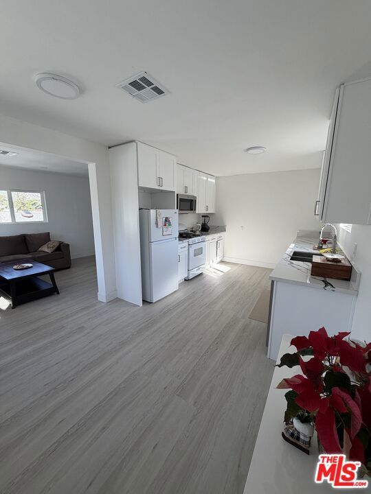 Remodeled 2nd floor unit of a duplex located in a quiet and safe residential neighborhood in Sunland. This 2-bedroom and 1-bathroom residence features a spacious kitchen, bright interior with plenty of natural light, and the convenience of an in-unit washer and dryer. Includes a bonus room/den created during the remodel, which is ideal for a home office or flex space. The unit offers a private entrance and access to a shared front yard and patio. Please note there is an additional occupied unit (ADU) on the property. Ample street parking is available. Rent includes water and sewer. Tenant is responsible for electricity, gas, and trash.