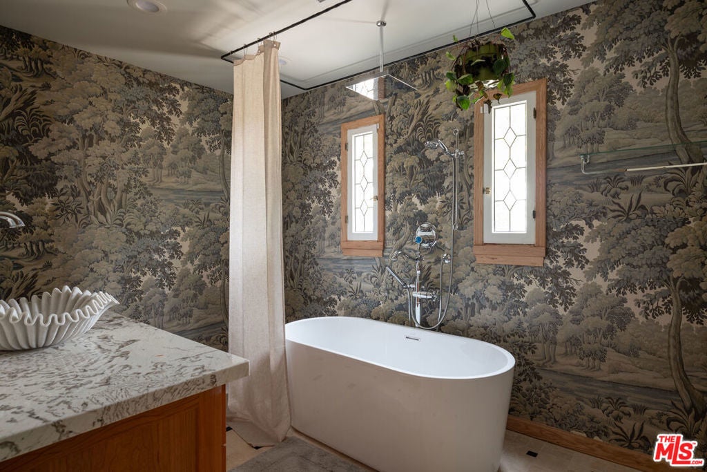 Organic 1930's Spanish located on a quiet street just above the boulevard in Studio City, with beautiful valley and city views. Private and secluded, this special offering has undergone a recent remodel, retaining character details such as apparent beams, stained glass windows, original fireplace, amongst many, yet outfitted with all of today's modern amenities providing an ideal lifestyle for the Spanish architecture aficionados. The light and bright floorplan is composed of 1 bedroom upstairs with en-suite bathroom, a sunk in living area that opens to a massive deck overlooking the lush yard, a chic kitchen adjacent to the dining space and powder room complete the public area. The lower separate level is its own private suite with bathroom, office nook and patio. The exterior offers a huge deck, perfect for dining al fresco and entertaining, expansive views and multiple levels of useable yard space featuring many green areas and fruit trees. With a large two car garage, and short distance to Carpenter Schools, Fryman Canyon trails and all the restaurants/shops/bars that Studio City has to offer, this very special retreat is one to not be missed. Available for long and short terms, fully or partially furnished, and unfurnished.