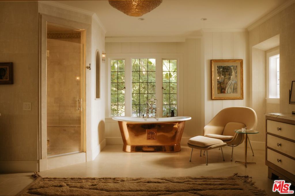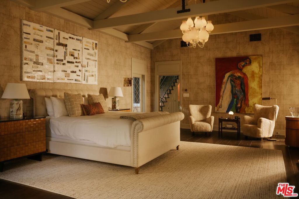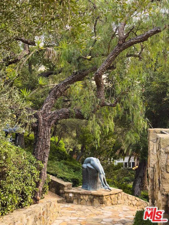 Once the storied Beverly Hills estate of Hollywood legend James Cagney, this rare and formerly celebrity-owned gated compound presents a once-in-a-generation opportunity to acquire a historic luxury estate in Beverly Hills 90210. Tucked privately beneath Franklin Canyon Nature Reserve, this expansive multi-residence Beverly Hills compound spans more than five acres of secured gated grounds, offering an unheard-of combination of acreage, provenance, and seclusion. Extensively renovated, updated and restored over many years, the private gated estate unfolds as a village-like enclave with multiple residences connected by hand-laid stone pathways winding through tiered citrus gardens, sculptural courtyards, candle-carved stone walls, and museum-quality European statuary. Mature landscaping and curated outdoor rooms create a timeless environment ideal for both intimate living and large-scale entertaining. The "Main Villa" is a romantic architectural centerpiece featuring reclaimed European terracotta roof tiles, exposed trussed-beam cathedral ceilings, leaded glass windows, and multiple restored original fireplaces. Designed for seamless entertaining, the home flows effortlessly from wine cellar and butler's pantry to formal dining and elegant yet warm living rooms, evoking timeless character. This main villa residence offers two primary bedroom suites with couture-scale closets and both suites include grand ensuite baths, soaking tubs, double vanities, step in showers for two, while an additional guest bedroom suite features luxurious cedar closet dressing room and en suite bath. Additional structural assets across the estate compound include a secluded guest residence known as "The Boathouse," with wood floors and trussed beams of antique 19th Century reclaimed French Oak complete with its own private gated drive and porte-cochre, ideal as an event venue, creative retreat, or production studio. "The Carriage House-Artist's Studio," is a multipurpose creative studio with full kitchen, en suite bath and auto garages. Plus an additional detached " Guest Cottage", which was Cagney's original art studio where he complete many collection paintings but now renovated to include a full kitchen and en suite bath. This epic compound provides multiple self-contained living environments, making this an exceptional multi-generational Beverly Hills estate uniquely versatile. Other features and amenities include separate regulation tennis and pickleball courts with grandfathered night lighting, a tennis spectator pavilion with wet bar, a glass-tile swimming pool and spa with poolside cabana and outdoor dining bistro. The Pavillion and Pool Cabana each include a fully equipped outdoor chef's kitchen. Expansive flat lawns and play fields offer rare recreational space within the hills above Sunset Boulevard. A true trophy property, the former James Cagney Estate stands as a legacy Beverly Hills estate where architecture, landscape, and artistry converge, perfectly suited for multigenerational living, artists-in-residence, or those seeking an irreplaceable Hollywood history estate in one of Los Angeles' most exclusive enclaves.