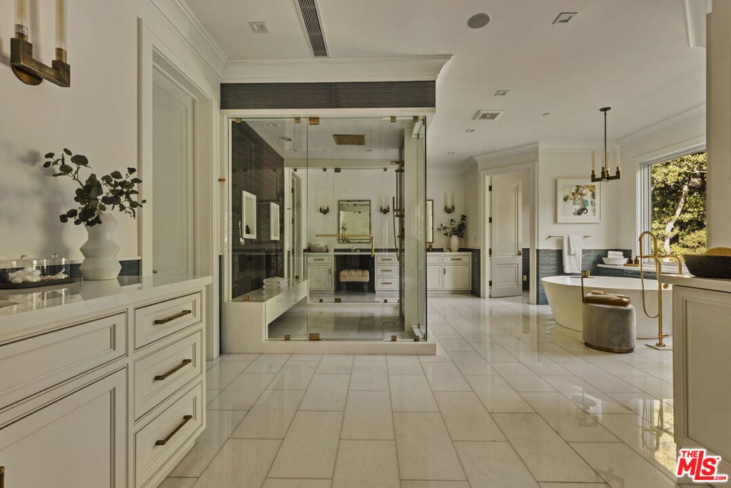 Located in Brentwood's prestigious Grove Estates, this nearly 14,000-square-foot gated residence offers exceptional privacy and sweeping canyon and Getty Center views. Set on over half an acre, the home is designed for elevated living and entertaining, featuring a dramatic entry, chef's kitchen, and resort-style grounds with a pool, spa, outdoor kitchen, and media lounge. Interior highlights include a private theater, wine cellar, bar, gym, sauna, indoor basketball court, and a 10-car collector's garage. The expansive primary suite features a spa-like bath, fireplace, dual closets, and private balcony, complemented by multiple en-suite bedrooms and separate guest or staff quarters. A rare opportunity for refined Los Angeles living.