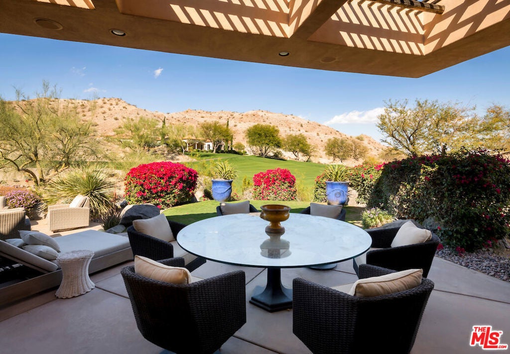 Rare offering of a large home on a large lot in Bighorn Golf Club, perfectly situated just two quick turns from the main gate and clubhouse, with Starbucks and the club market only a minute away. This meticulously crafted 5-bedroom, 6-bathroom residence with an office spans 5,994 sq. ft. on a 17,424 sq. ft. lot with breathtaking golf course and mountain views on both sides of the property! Primary and guest suite on main floor along with all living spaces with three large suites upstairs for kids or guests. The floorplan offers a formal living room and sizable open kitchen, featuring brand-new Wolf range & Viking appliances with Bosch dishwasher, warming drawer, microwave and wine refrigerator. Also, counter seating for six, and a formal dining room for 8-10, seamlessly flowing into the family room with sliding glass doors that open to the expansive backyard. Additionally included in the home are four brand-new HVAC units, new master shower and master bath upgrades, along with new main room wood flooring. The primary suite on main floor offers a private den with a fireplace, a dedicated workout wing, and a luxurious bath with a walk-in closet and a low soaking tub for easy access to the yard and private sunning area. A separate guest wing on the main level provides access from both the courtyard and inside the home, while three spacious suites upstairs boast oversized walk-in closets, perfect for extended guests or children. The side courtyard is an entertainer's dream, featuring a basketball or play area away from the pool and room to add. In the front courtyard you will find a gazebo, a pool and spa, a custom BBQ grill, and serene waterfalls that create an ambiance of tranquility. The waterslide adds to the fun, making it the perfect space to create lasting memories with family, friends, and even pets for all day and night play. Super rare opportunity with endless possibilities for enjoyment and upside for years to come.