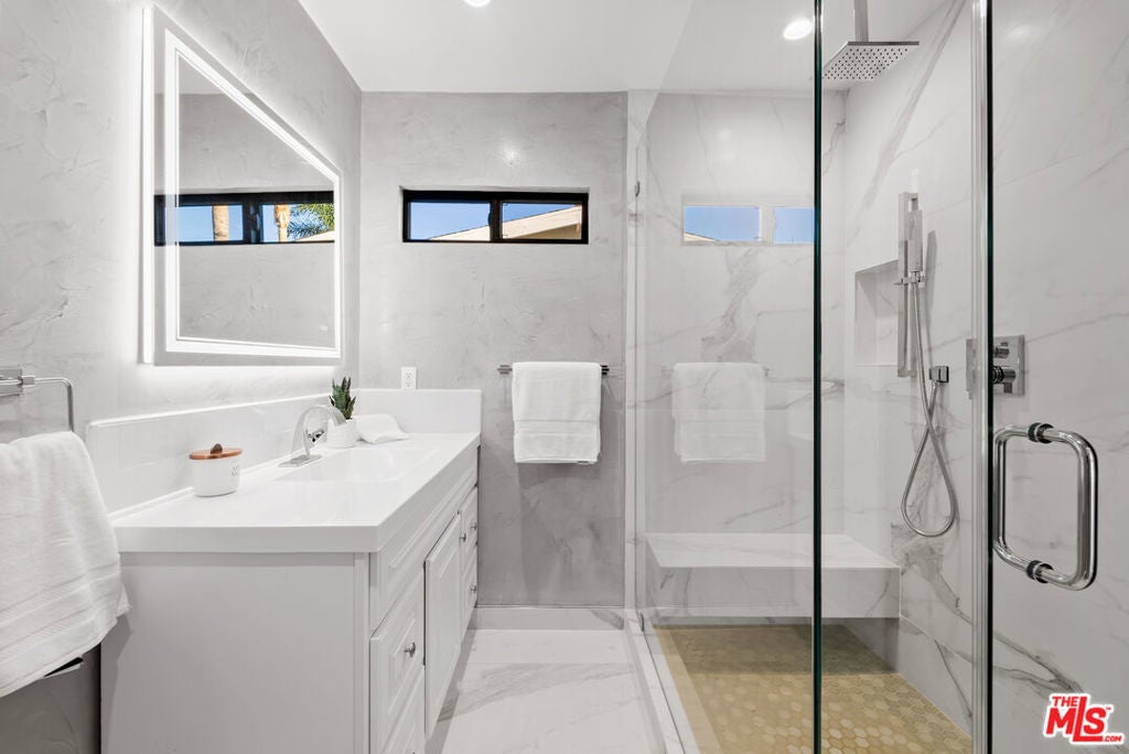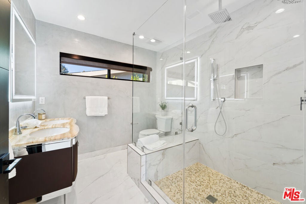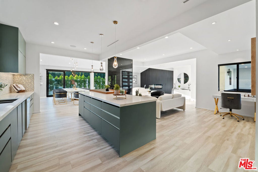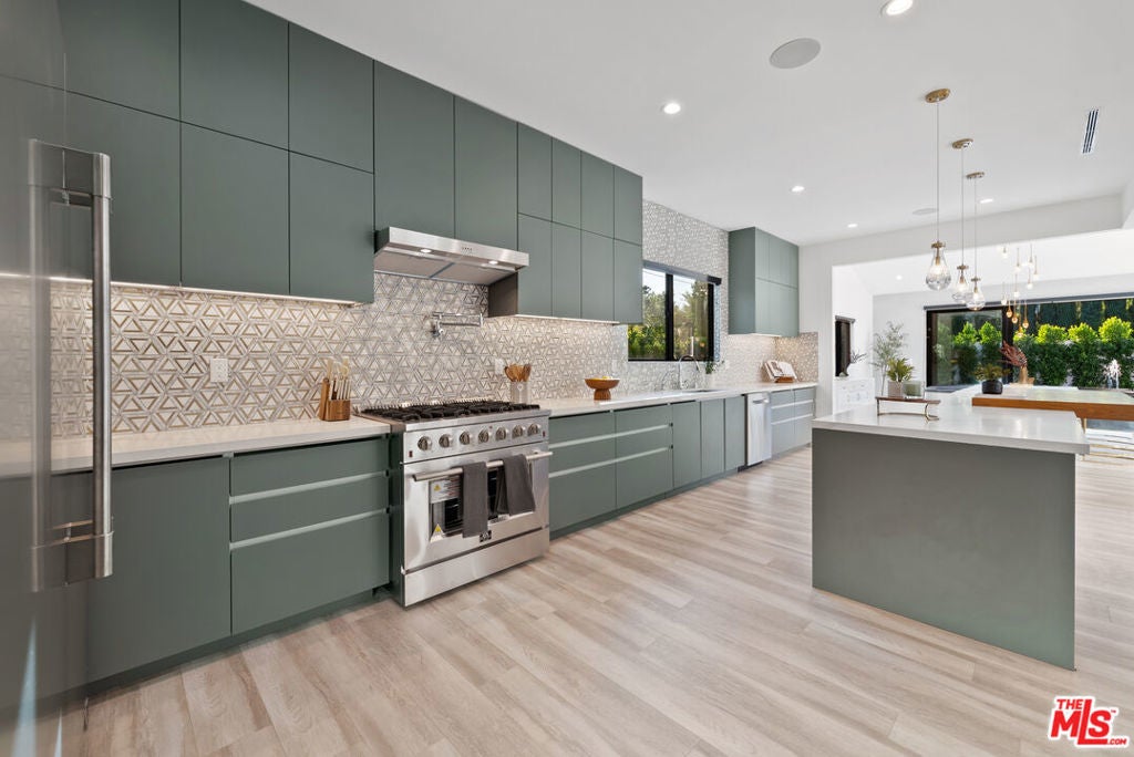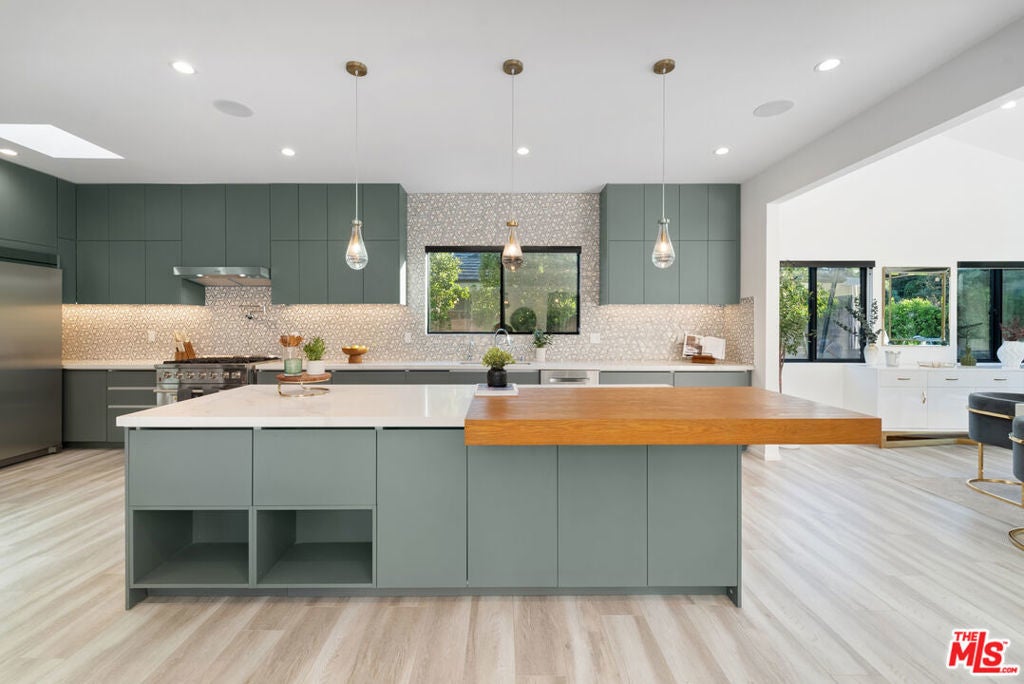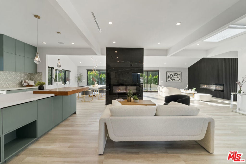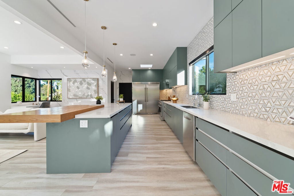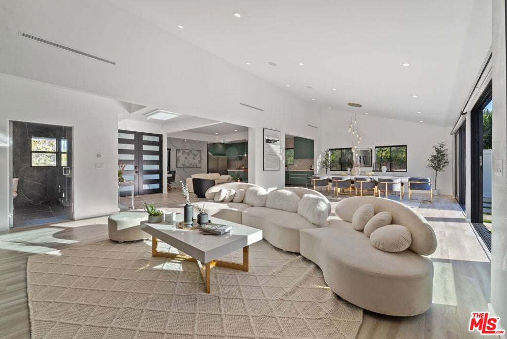 Welcome to this privately gated, single-story South of the Boulevard home that has been beautifully updated inside and out. Double doors invite you into a bright and airy open floor plan that features a spacious formal living and dining room with vaulted ceilings, inviting family room and state-of-the-art chef s kitchen equipped with top-of-the-line stainless steel appliances and a massive island with a breakfast counter. Dual oversized sliding glass doors extend your living space outside for true indoor-outdoor living. Surrounded by privacy hedges, the tranquil backyard oasis is highlighted by a sparkling pool/spa, outdoor kitchen with bbq and a built-in fire pit. There are three generously sized ensuite bedrooms, including a luxurious primary suite that offers a custom walk-in closet and spa-like bathroom boasting an oversized rainfall shower and double vanity. Additional amenities include a laundry room and two-car garage. This prime South of the Boulevard location is in the heart of Tarzana, within a top-rated school system and moments away from shops, restaurants and easy access to the 101 freeway. Available to lease fully furnished at $15,000/mo.