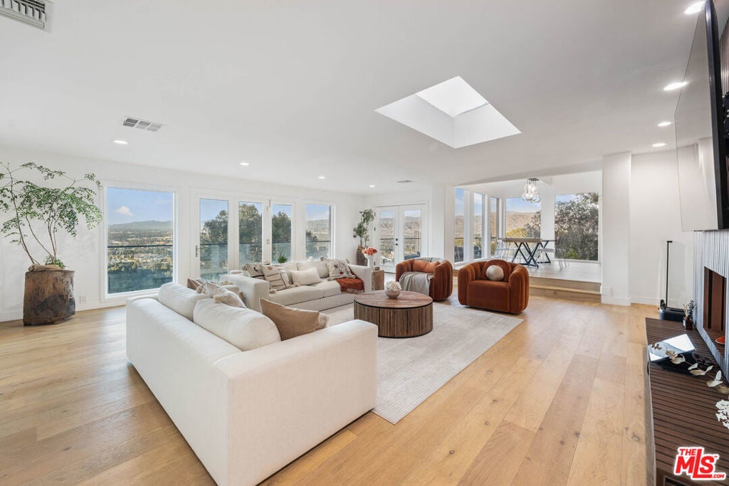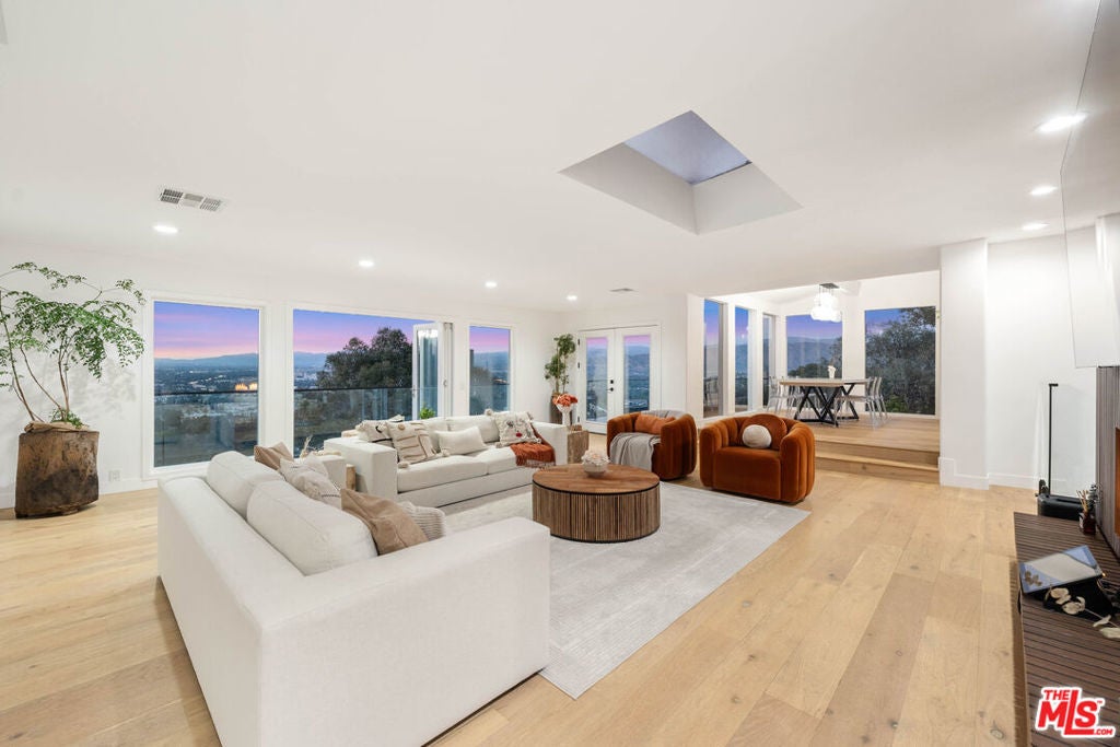 Welcome to your private hillside retreat at 3541 Multiview Drive, a beautifully renovated and fully furnished residence offering luxury, privacy, and sweeping views in the heart of the Hollywood Hills. This gated 4-bedroom, 3.5-bath home with a dedicated office and four expansive outdoor patios is designed for true retreat-style living, combining serene seclusion with immediate access to the city. Thoughtfully renovated with modern finishes and an open-concept layout, the home captures panoramic city lights and mountain views over Studio City and the Santa Monica Mountains, delivering stunning sunsets from nearly every room. The residence comes fully furnished with curated, high-end pieces throughout, including a top-of-the-line massage chair, Tempur-Pedic and Beautyrest Black mattresses, and designer dcor that elevates every space. A newly installed whole-home water filtration system provides exceptionally clean, soft, and drinkable water from every faucet. Ideal for both relaxation and entertaining, the home features an 85-inch smart TV in the living room, a 70-inch TV in the primary suite, a chef's kitchen with premium appliances, sleek cabinetry, and a breakfast bar, as well as four spacious outdoor patios perfect for lounging, dining, and hosting with breathtaking canyon and city views. Additional highlights include a tranquil waterfall fountain and a private, fully walled setting that ensures peace, security, and privacy.The primary suite offers a true sanctuary with a spa-style en-suite bathroom, private terrace, and dramatic skyline views. One bedroom is located in a fully detached guest house, providing exceptional flexibility and privacy for guests, extended family, or a home office. The guest house includes a private full wood sauna, creating a rare at-home wellness experience seldom found in the area. Additional property features include central air and heat, in-unit washer and dryer, a one-car garage, EV charger, additional driveway parking for two vehicles, and convenient street parking directly adjacent to the home. Tucked just off Mulholland Drive, this quiet hillside property offers an unmatched balance of tranquility and accessibility, with quick access to hiking trails, entertainment, dining, and major studios. Ideal for corporate relocations, executives, creatives, or anyone seeking a fully furnished luxury residence, this exceptional home delivers a rare retreat-in-the-city lifestyle in one of Los Angeles' most desirable neighborhoods.