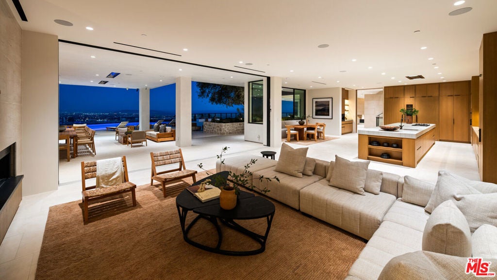 It's rare to find truly spectacular unobstructed, panoramic views paired with complete privacy, but you'll find both at The Outlook, a stunning new contemporary home designed by David Maman. Perched atop a private cul-de-sac high above Brentwood, 1204 Chickory Lane spans approximately 15,000 square feet with 9 bedrooms, 16 bathrooms, and breathtaking vistas that sweep from Downtown L.A. and the Getty Center to the Pacific Ocean and beyond. Here, you don't just see the city you rise above it.Tucked behind double gates, a long private driveway leads to the grand entrance with water feature. Inside, soaring ceilings and sleek pocket doors frame breathtaking vistas and effortless indoor-outdoor living.The main level flows to a resort-style backyard with an edgeless pool, outdoor kitchen, covered patio, and expansive grassy lawn. Interior highlights include formal living and dining rooms, a private office, and a stylish open kitchen with adjoining family area, butler's kitchen, walk-in pantry, and commercial-grade fridge.Upstairs are 5 en-suite bedrooms, including a luxurious primary suite with dual bathrooms, dual walk-in closets, and an oversized private view patio. Each bedroom enjoys sweeping canyon and ocean views. The amenity-rich lower level offers a bar, pool table, temperature controlled glass wine cellar, screening lounge, and a full wellness center with gym, sauna, steam, cold plunge, hot tub, and massage area. Two ensuite bedrooms provide additional space for guests.Additional features include an 8-car gallery garage with guard room, 2-bedroom staff suite, and dual laundry rooms.Moments from Brentwood's top shops and dining, 1204 Chickory Lane is where privacy meets elevated luxury.