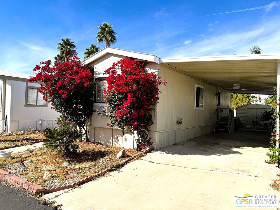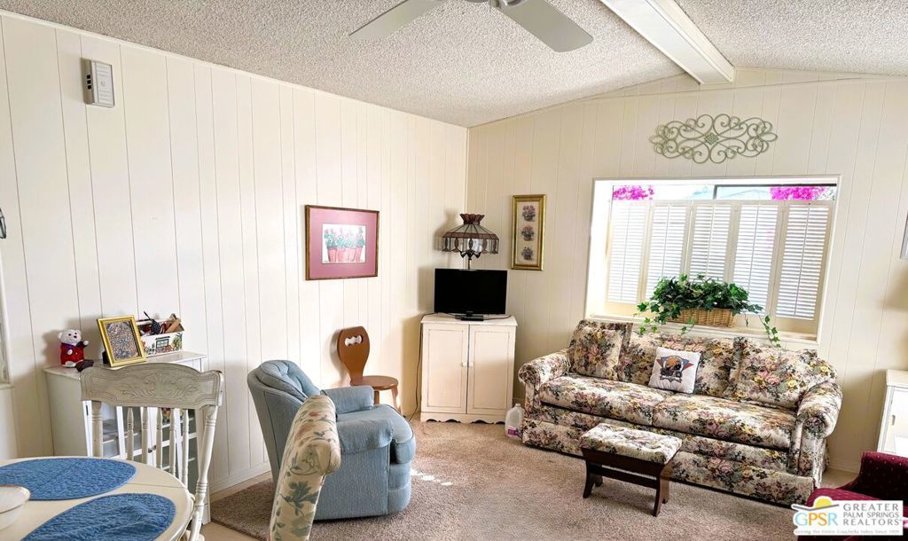 Check out this well kept FURNISHED home located in the cozy 55+ community of Corkill Palms. There is 560 square feet of open living space plus a bonus room addition approximately 8' x12' perfect for an office or extra sleeping area when overnight guests arrive. There is 1 bedroom and 1 bath. Bright and cozy eat in kitchen with refrigerator, gas range with hood vent and microwave. Relaxing porch off of living room with nice mountain view. There is a storage shed off the carport approximately 9' x 12' with newer washer and dryer and work bench complete with several tools. Roof and storage shed roof recoated in 2019. Relax in the Therapeutic Natural Mineral Springs at the Clubhouse or have some fun on the putting green or in the billiard room. This unit is super close to these amenities for easy access. Also, if you have a dog, this home has a back yard perfect for your pet. Buyer to verify with park manager space rent amount and any utility charge amounts passed on to home owners. Call today to set up an appointment to view this great property!