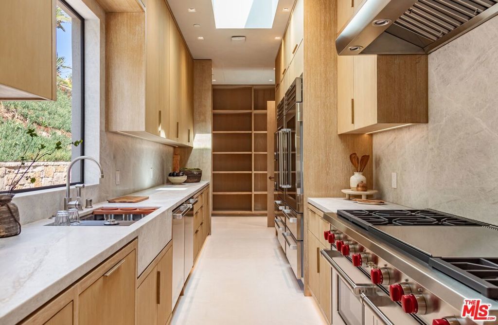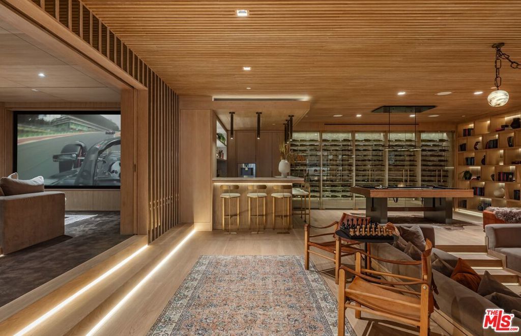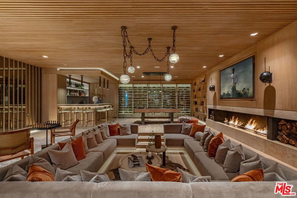 Experience timeless elegance in the exclusive Trousdale neighborhood of Beverly Hills. This organic estate, designed by renowned designer Charles Infante, weaves his experience in film to create a narrative fit for entertainment and curated for elevated living in every possible way. Spanning approx. 10,000 square feet, this architectural masterpiece showcases rich natural tones with Portuguese limestone, Italian Navona travertine, white oak paneling and floors, organic custom plaster walls, and motorized custom steel windows. Sleek lines perfectly frame cinematic city-to-ocean views. Inside, the main living spaces are open and airy, with walls of glass that fully pocket to create a seamless indoor/outdoor flow to the pool, spa, and patio. The expansive living room, dining area, and both the main and chef's kitchens are designed for grand scale living and entertaining. Four ensuite bedrooms offer refined comfort, in addition to a spacious, tranquil primary suite with motorized walls of glass, panoramic city views, and a spa-style bath. Luxurious amenities include a sleek gym with sauna, a temperature-controlled wine display, and an epic entertainment lounge with a sunken conversation pit, full bar, and state-of-the-art theater. The fully finished showcase garage features a car turntable; perfect for showcasing your collection. This is your moment to live above it all, in a home that sets the new standard for Trousdale living.