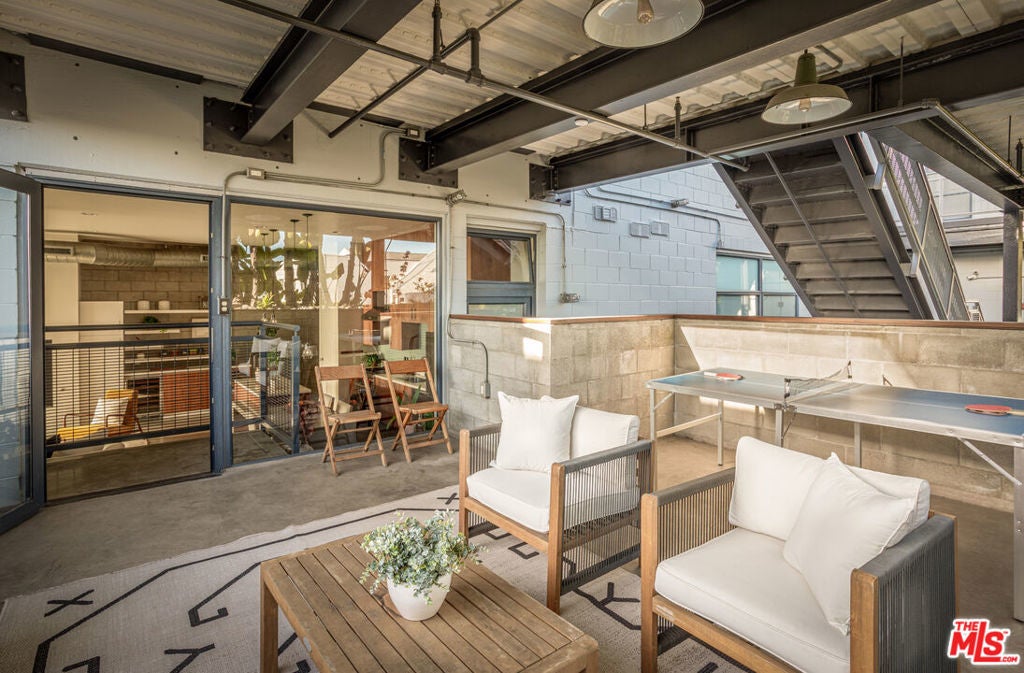 Step into this stunning Santa Monica residence where industrial design meets luxurious finishes in a truly unique space. From the moment you enter, you're greeted by industrial elegance, polished concrete floors, and expansive floor-to-ceiling windows that bring the home natural light. High ceilings and thoughtful pops of color and pattern enhance the open floor plan, creating an inviting and visually striking ambiance. Channel your inner chef in the updated gourmet eat-in kitchen, featuring premium stainless steel appliances, a center island, and ample space to create and entertain. The living area is centered around a modern fireplace, setting the tone for cozy evenings or lively gatherings. Step outside to your private oasis: the building's only covered patio, a 300 sq ft retreat surrounded by a brick wall and lush greenery ideal for relaxing or entertaining under the stars. The spacious primary suite offers a spa-like ensuite bath complete with a soaking tub, dual sinks, and a luxurious walk-in shower. This Santa Monica condo included Central air, 2 underground secured parking spots, lockable on-site storage and your own 220V charging station. Perfectly located with quick access to the Metro Expo Line, Memorial Park and an array of shops and restaurants, this home offers a lifestyle of convenience, comfort, and sophisticated urban living.
