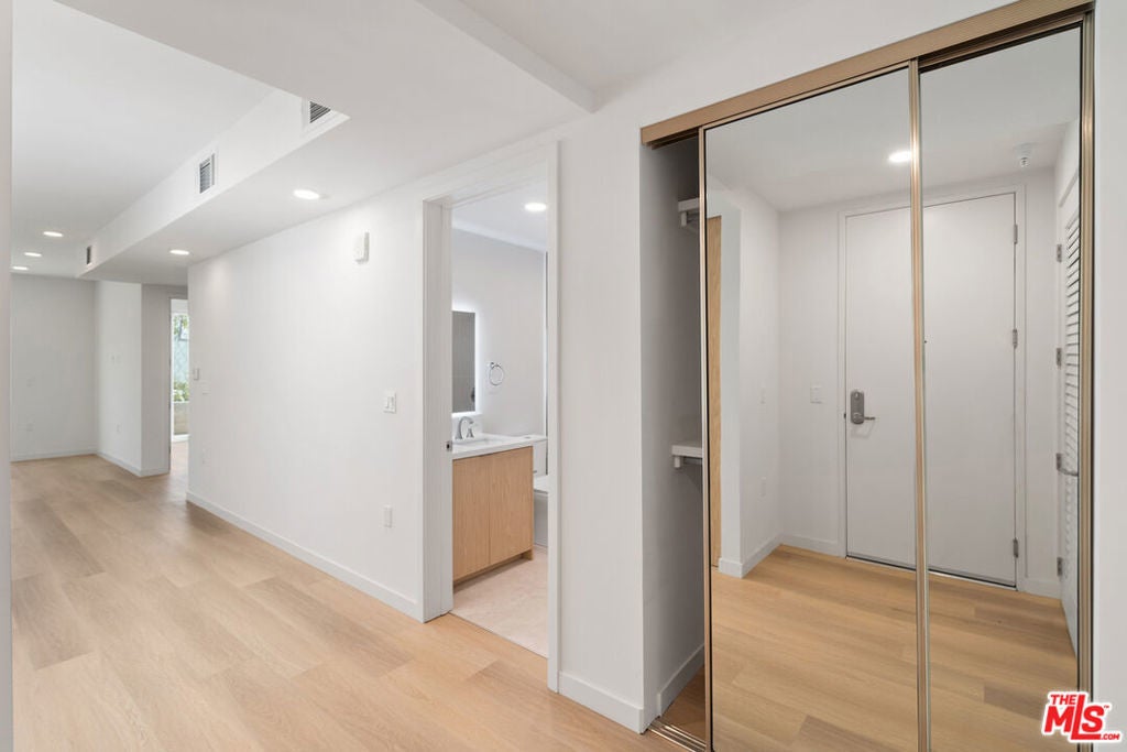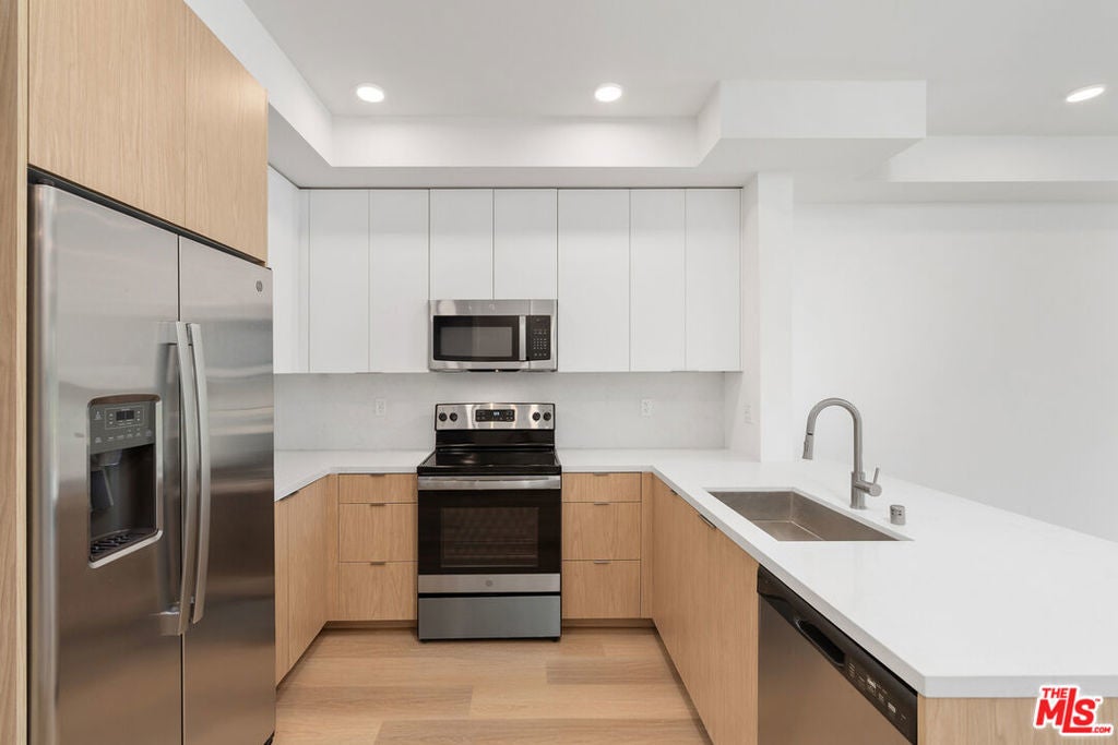Welcome to The Fulton, a stylish, modern building located in the heart of Sherman Oaks just one block from vibrant Ventura Blvd, home to some of the city's best restaurants, cafes, and grocery stores. Where elegance meets practicality, this newer-construction building offers the perfect balance of architectural design, convenience, and comfort.This beautiful first-floor corner unit, features a contemporary kitchen with stainless steel appliances, in-unit washer and dryer, wood flooring, and an open-concept living and dining area that flows effortlessly to a private patio perfect for enjoying your morning coffee or an evening breeze.Both bedrooms are spacious, each with their own closet, and the two-bathroom layout ensures ease and privacy. Additional features include one assigned parking spot equipped with an EV charger, adding convenience for electric vehicle owners.With thoughtful design elements and a prime location, this unit has everything you need to enjoy modern living in one of the Valley's most sought-after neighborhoods.* Images may show a similar unit and include virtual staging. Actual layout may vary.
