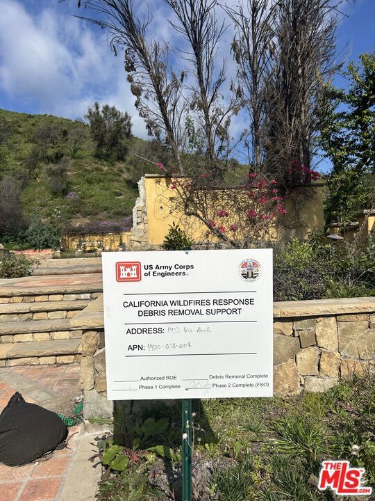 UNIQUE OFFERING IN THE PALISADES. Located behind the gates of the prestigious Ridgeview Country Estates, this exceptional 42,120 sq.ft. parcel sits atop a quiet cul-de-sac, offering a rare opportunity to rebuild and reimagine a world-class estate in one of Pacific Palisades' most private and coveted enclaves. The previous residence spanned 6,668 sq. ft. Surrounded by natural beauty and seclusion, the setting offers a peaceful retreat with estate-level scale and presence. Phases 1 & 2 of debris removal have been completed and cleared by the U.S. Army Corps of Engineers, providing a streamlined path for future development. Gate Access Required. Please contact LA1 & LA2 for all inquiries.