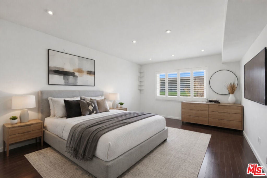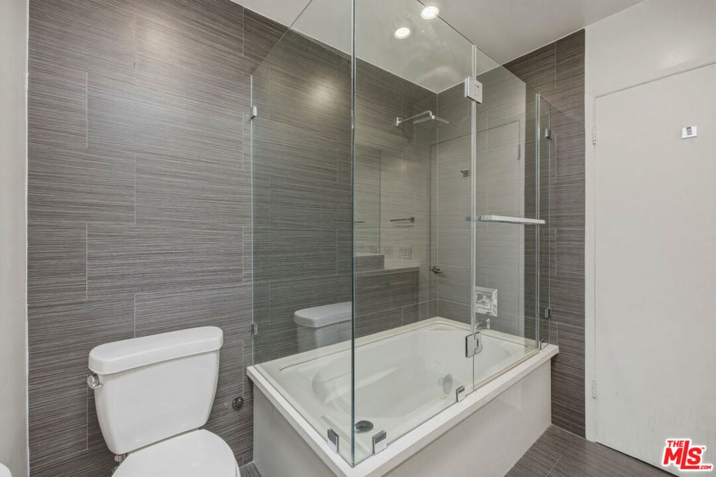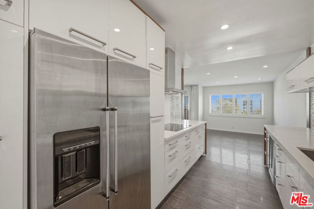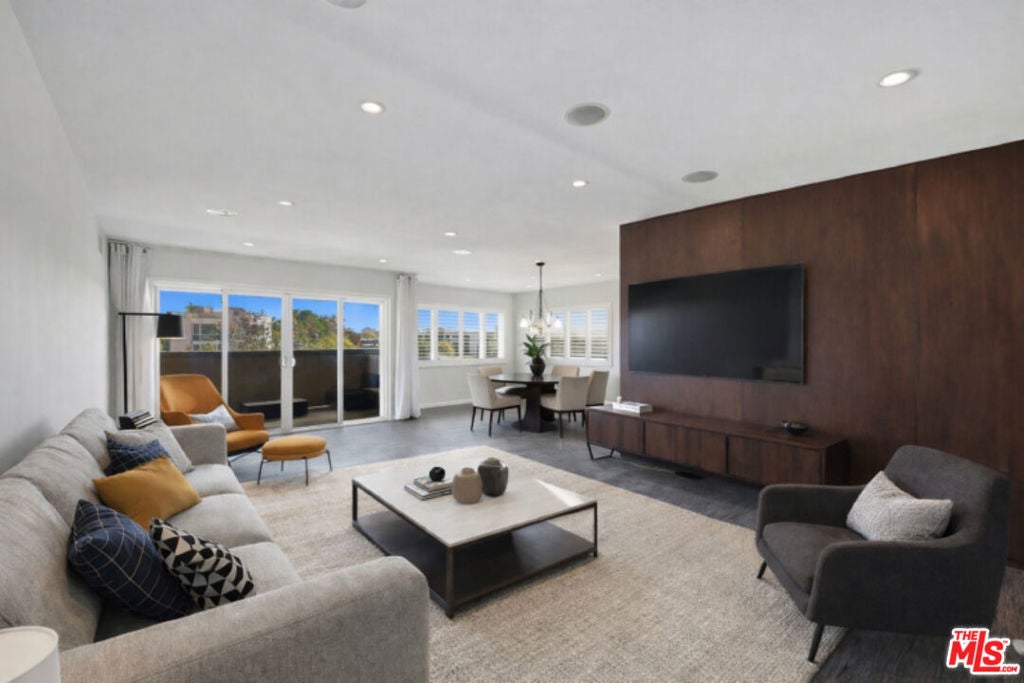 Welcome to modern living at The Bristol, ideally located in the heart of West Hollywood just north of Santa Monica Boulevard and east of La Cienega. This top-floor residence offers approximately 1,379 square feet of thoughtfully designed living space with sweeping east-facing views and abundant natural light throughout. The spacious, bright, and airy living room opens to a private balcony, perfect for morning coffee, evening relaxation, or stargazing. An open-concept layout seamlessly connects the living room, dining area, and kitchen creating an inviting space for both everyday living and entertaining. The updated kitchen features stainless steel appliances, quartz countertops, and ample cabinetry, offering both style and functionality. A dedicated dining area is adjacent to the kitchen, enhanced by large windows that fill the space with natural light. Tile flooring in living room, dining area, kitchen and bathrooms, coupled with hardwood flooring in both bedrooms and hallway adds to this unit's clean, modern aesthetic. The spacious primary suite provides an expansive eastern view, a roomy walk-in closet, and an updated en-suite bath with a glass-enclosed shower. Both bathrooms have been tastefully updated with contemporary finishes, including skylights, and a double vanity + glass-enclosed shower / soaking tub in the second bath. The second bedroom is versatile and ideal as a guest room, home office, or nursery, and also faces east with a view. Dining area and bedroom windows have plantation shutters. An additional highlight offers the convenience of an HOA-approved washer / dryer combo in the unit that is located in a laundry room with additional storage. There are two assigned side-by-side parking spaces in the gated garage along with a private storage cabinet. Residents of The Bristol enjoy access to a pool and expansive outdoor common area with tables and seating, perfect for relaxing or entertaining. Monthly HOA dues of $699. includes water, property maintenance and structural earthquake insurance. Ideally situated near some of West Hollywood's most popular destinations, The Bristol is just moments from Sunset Boulevard, Barry's and Equinox gyms, Gelson's, Trader Joe's, Landmark Theatres, Marix Cafe, La Boheme, CVS, Wells Fargo, Bank of America, and soon-to-open Laurel Supply and Erewhon markets, placing the best of city living right at your doorstep.