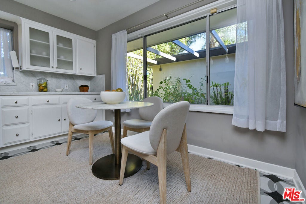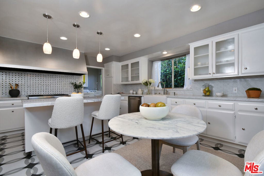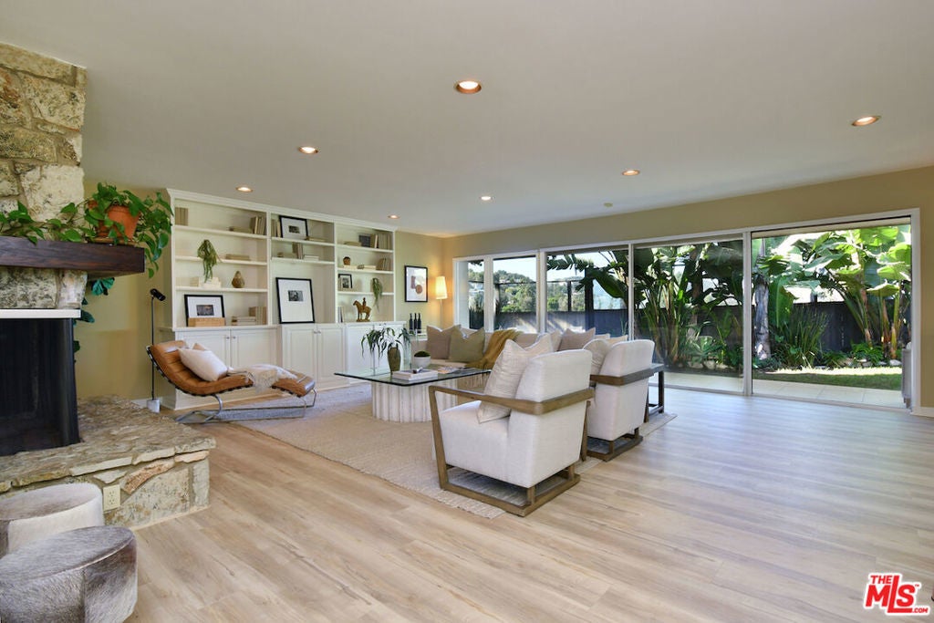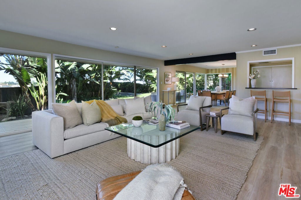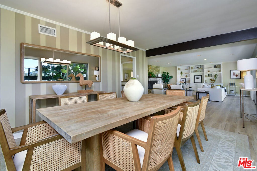 Gated and set back from the street, this single-story mid-century home offers a well-designed floor plan with open living spaces and walls of glass that frame the surrounding views. A welcoming garden entry leads to an expansive living room with a natural stone fireplace, built-in bookcases, and direct access to the formal dining room and bar, creating a comfortable flow for everyday living and entertaining. The updated center-island kitchen includes a breakfast area, Viking oven and range, generous storage, and a pantry. The spacious primary suite features a dressing area and an en-suite bath. Private backyard with a lounging pool/spa, covered patio, and deck, surrounded by mature landscaping and trees. Additional highlights include an indoor laundry room, a two-car detached garage with potential for an ADU, and an oversized driveway for off-street parking. Great neighborhood near the top of Sherman Oaks and close to Mulholland Drive, the home has easy access to Beverly Hills, Ventura Blvd. and the Westside. Roscomare Road School District.