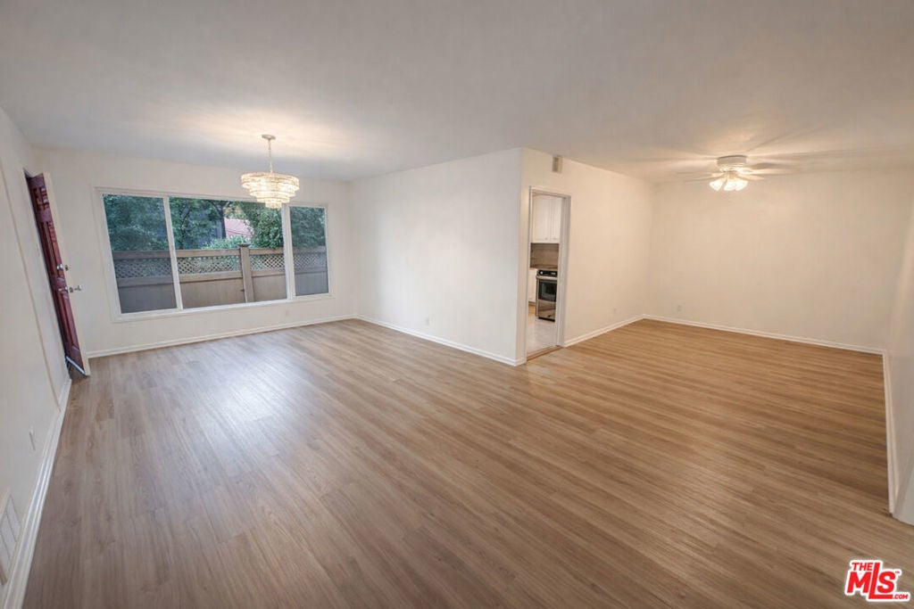 This spacious and light-filled 2-bedroom, 2-bath residence is located in a quiet, well-maintained 6-unit building in the heart of Beverly Hills. The unit features abundant closet space and brand-new flooring throughout the living room, dining area, bedrooms, and hallway. The updated kitchen showcases crisp white cabinetry, new granite countertops, and stainless steel appliances, including a stove and dishwasher. Additional highlights include central heat, in unit laundry, new windows, and ceiling fans in the dining area and both bedrooms. Community amenities include one covered parking space, and a private storage cabinet.