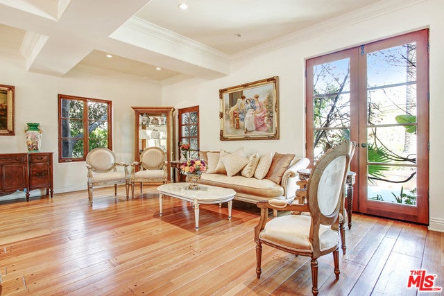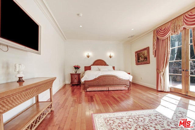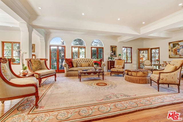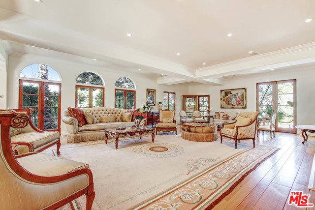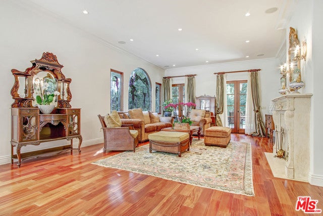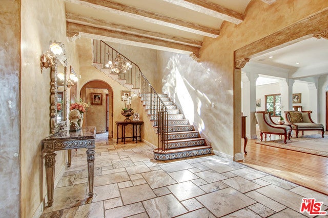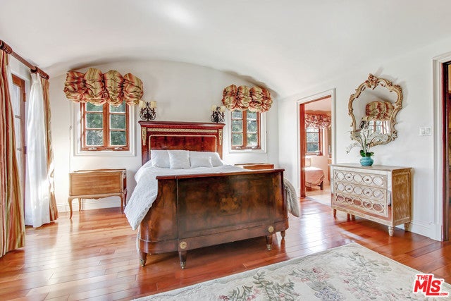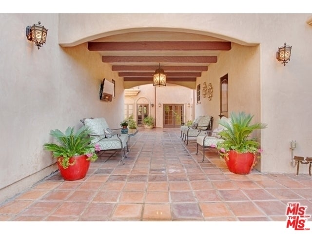 Luxurious, gated private Mediterranean estate nestled in the heart of Beverly Hills, rebuilt in 2008 with refined modern touches. This exceptional residence blends classic Hollywood glamour with timeless luxury, highlighted by dramatic stained-glass windows and soaring ceilings throughout. Designed for grand entertaining, the home features expansive entertainment spaces, a formal living room, formal dining room, and a spacious den. French doors throughout create seamless indoor-outdoor living. The lush, grassy backyard is an entertainer's dream, complete with elegant fountains, a luxurious pool and spa, and serene garden views. The main residence offers a lavish primary suite with a private sitting area, separate his-and-hers bathrooms, and dual walk-in closets. Additional oversized bedroom suites feature luxurious en-suite bathrooms. The chef's kitchen is outfitted with top-of-the-line appliances .A truly unique highlight: an antique bowling alley, adding character and distinction rarely found in today's estates. The modern guest house, built in 2014, spans approximately 1,500 sq ft and includes 3 bedrooms, 2.5 baths, and a generous living area ideal for guests, extended family, or staff. A one-of-a-kind Beverly Hills compound offering privacy, prestige, and unparalleled amenities.