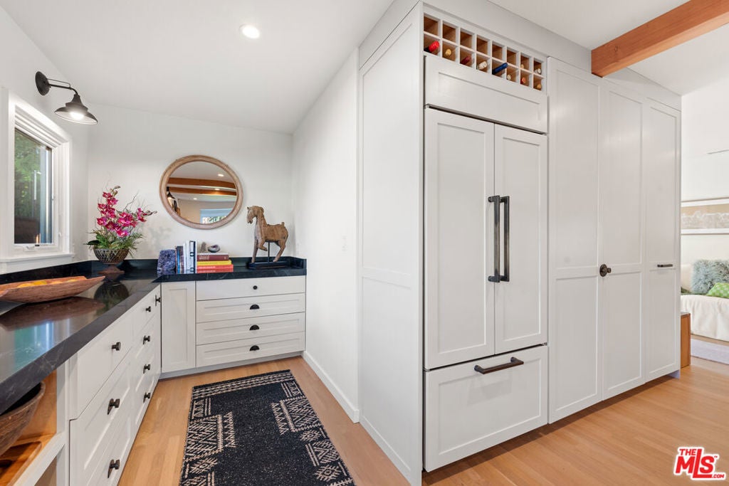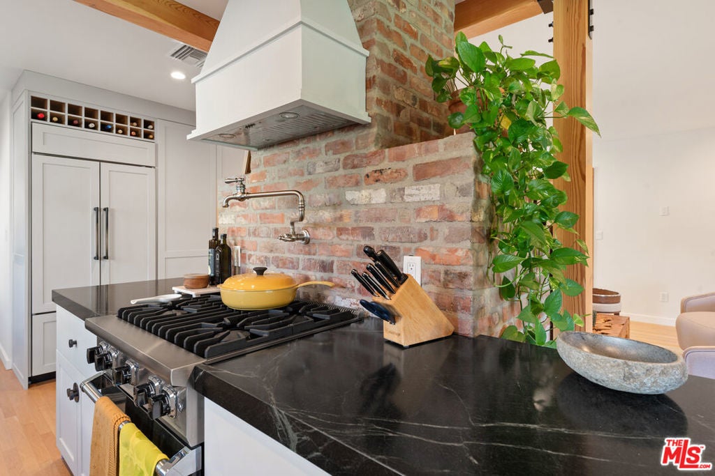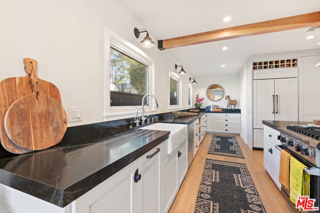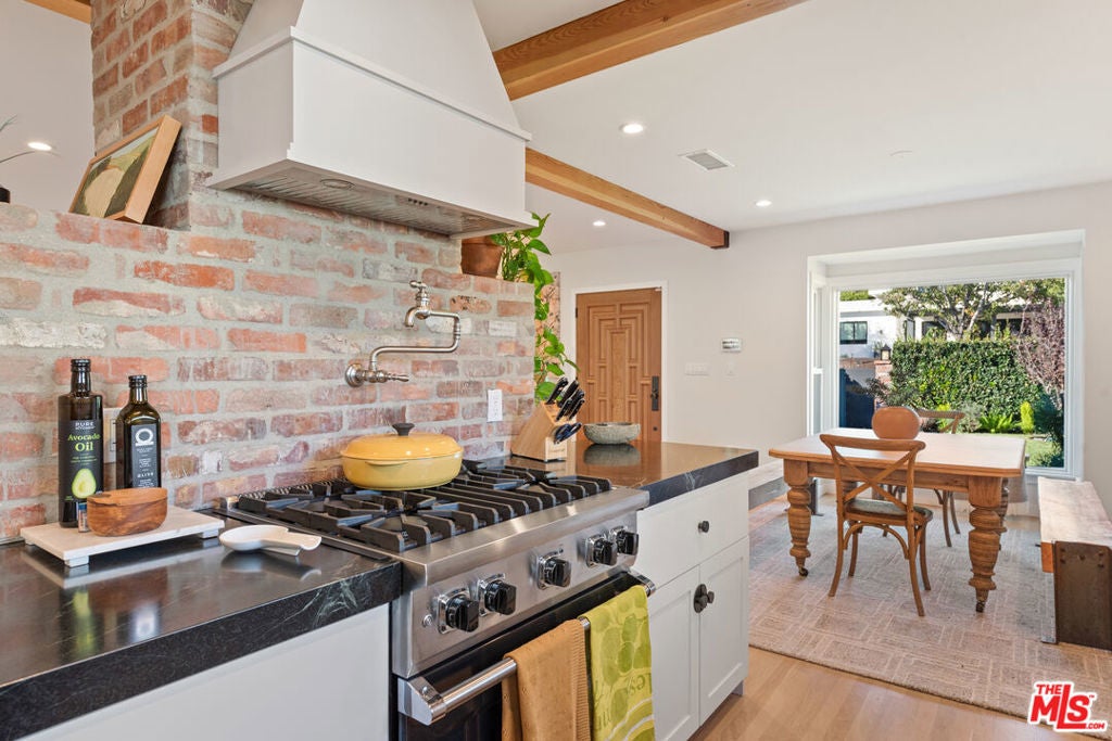 11314 Homedale Luxury Residence with Designer Finishes & Private ADU | For Lease Experience refined living at 11314 Homedale, a meticulously crafted residence offering exceptional materials, thoughtful design, and premium amenities throughout the main home and detached ADU. This property blends modern luxury with artisanal details, creating a truly elevated living experience. The main residence features custom Oaks cabinetry throughout the kitchen, pantry, bathrooms, and every bedroom closet, paired with 4-inch-thick solid Canadian White Oak flooring for timeless warmth and durability. The chef's kitchen is anchored by a custom-carved Brazilian honed black soapstone marble countertop, complemented by top-tier appliances including a Sub-Zero refrigerator, Wolf range, and Bosch dishwasher. High-end Kohler and Kalista fixtures are featured throughout the kitchen and bathrooms. The spa-inspired jacuzzi bathroom showcases Zellige Moroccan tile flooring and handmade painted tiles in the shower, enhanced by Rohl faucets and advanced shower features for a resort-quality experience. The home also includes LG washer and dryer, with an additional washer dedicated to delicate garments. Additional conveniences include a garage sink with hot and cold water, 220-volt electrical ready for EV charger installation, and a comprehensive front and backyard drainage system designed to prevent flooding. Outdoor living is equally impressive, featuring a redwood deck and a private outdoor shower with hot and cold water, ideal for entertaining or relaxing year-round. The detached ADU offers complete independence and versatility, finished with Zellige Moroccan tile in the kitchen, a gas cooktop, mini-fridge, stainless steel sink with food disposal, and a beautifully designed bathroom with marble and porcelain tile. The ADU includes its own LG washer and dryer and an independent tankless water heater, making it ideal for guests, extended family, or a private home office. Smart and secure, the property is equipped with Starlink internet, five exterior Ring cameras, and a Brinks security alarm system. This exceptional home offers luxury, functionality, and privacy in one of the area's most desirable settings perfect for those seeking a high-end lease with uncompromising quality.
