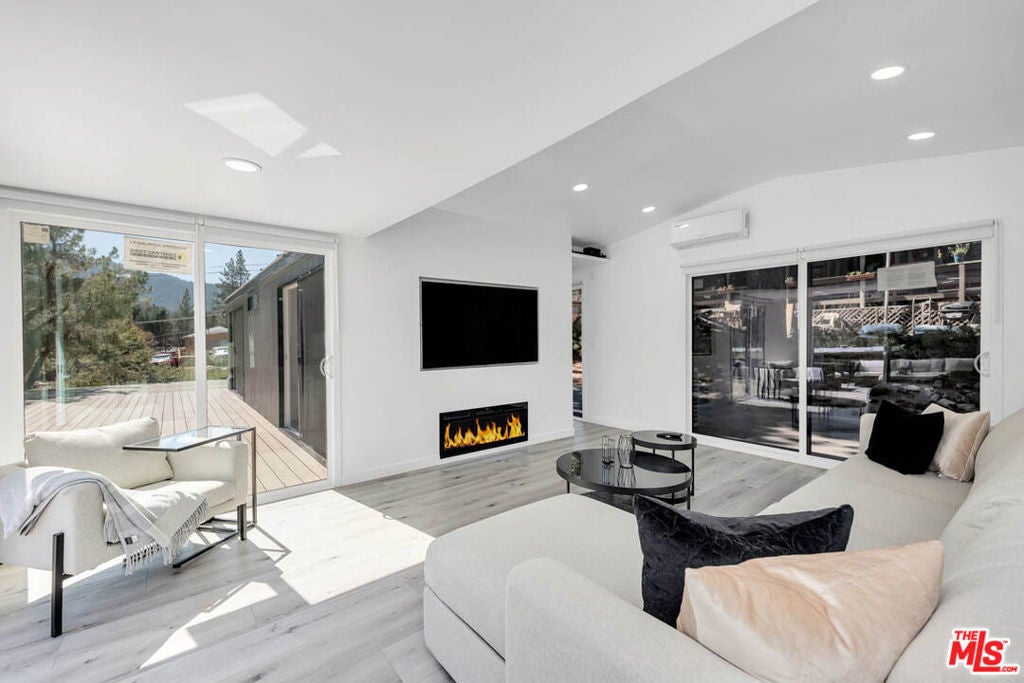 Welcome to your perfect mountain getaway with breathtaking views! This stylish, completely remodeled hillside retreat offers excellent craftsmanship and stunning finishes for a true luxury experience. This gorgeous property showcases open concept floor plan, two bedrooms, and one bath with all rooms opening up to magnificent mountain views! An oversized deck with a spa completes this stunning home and provides everything you need to enjoy a scenic mountain lifestyle or an extraordinary vacation home! Enjoy a soothing hot tub under the stars on a beautiful summer night or during winter wonderland. Panoramic deck with unobstructed views was designed to give you the perfect feel of relaxation and peace while hosting your friends and family gatherings. Top of the line modern look in combination with mountain style finishes include built-in entertainment, electric fireplace for cozy winter evenings, beautiful waterproof laminate flooring throughout, quartz countertops, energy efficient tempered windows and sliding doors, tankless water heater, and more. Property is perfectly located in the gorgeous Pine Mountain Club community that offers the best outdoor experience with pool, tennis courts, golf course, equestrian center, lakes and hiking trails! Walk to your favorite community events, kids playground, shopping, dining and entertainment. Enjoy the outdoor escape experience in mountain magic! This stunning, bold and dynamic, formal and intimate home has it ALL!