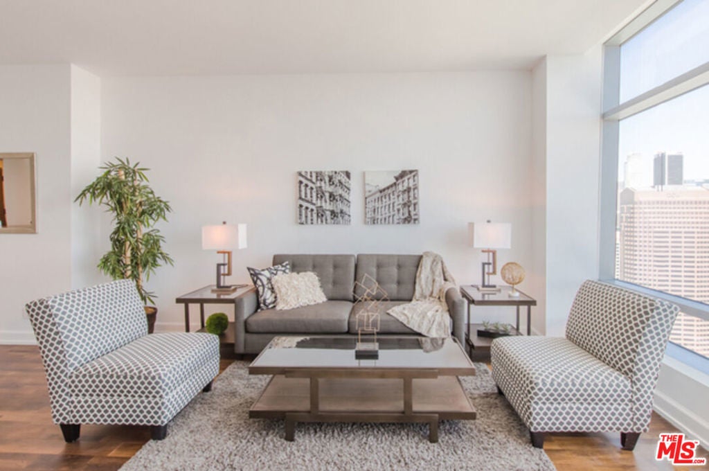 Ritz-Carlton Residences - Luxury Living. Regarded as one of the best white-glove buildings in the city. This beautiful 1-bedroom/1.5-bath (E Floor Plan Unit) features some of the best, unobstructed views in the building - Panoramic Views of Downtown LA to the Hollywood Hills. Jeweled with gorgeous finishes throughout. Ample-sized bedrooms with their own luxurious, en-suite baths. Sleek chef's kitchen with Snaidero cabinetry and high-end appliances. The Ritz-Carlton Residences offers 5-star amenities, including 24-hour valet parking, security, concierge services, in-room dining, and maid service. Their exclusive fitness center spans over 8k square feet. Enjoy the rooftop swimming pool, relax in the spa, or indulge at the salon. The Executive Boardroom allows you to live and work without leaving the building. Entertain guests in the Sky Lounge. Or, watch movies in the building's private movie screening room. Also, enjoy some of LA's hottest spots only a few moments away, including concerts, sports events, restaurants, nightclubs, etc. Water, Gas, Trash, sewer, storage, and general & earthquake insurance are included in your HOA fees. All offers due 2/27/2026. Offers subject to interior inspection.