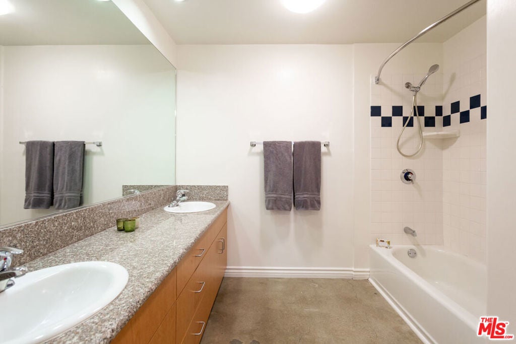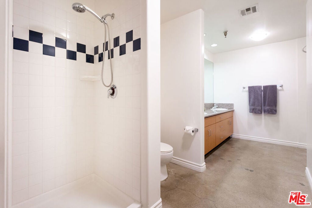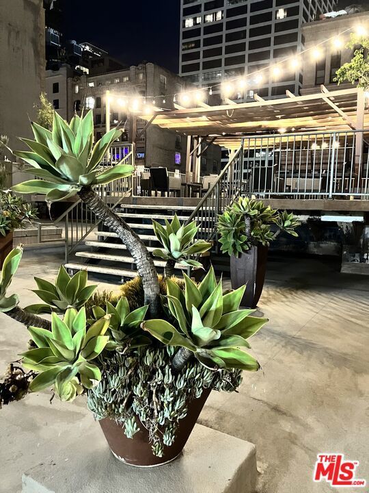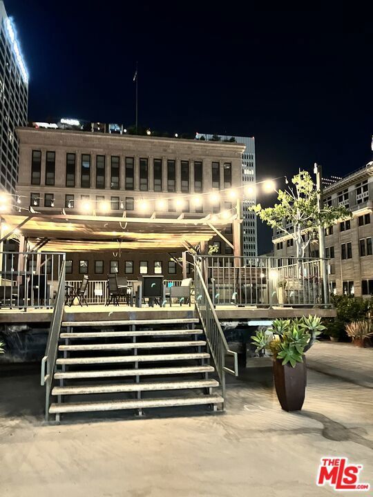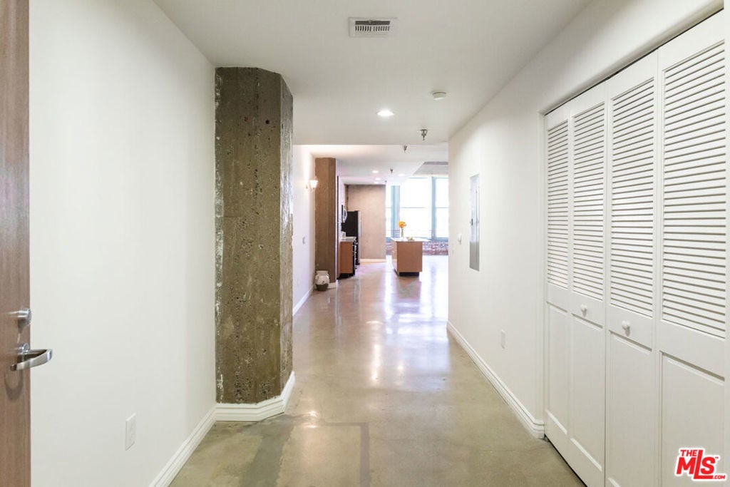 Originally a Los Angeles department store beautifully converted into live/work loft apartments with 14 foot ceilings, exposed concrete support columns and ceilings. Updated with modern stainless steel appliances. Each unit has a full size washer and dryer. Full bath with separate shower stall plus powder room. Lots of closet space. Rooftop deck with city views includes a Barbecue Grill. Secure underground parking is available. Centrally located near Whole Foods, Los Angeles Athletic Club, Per LA Hotel and Metro Station. This unit is an open floor plan. Easter exposure with city lights view. Inside photos representative of appliances and finishes, may not be for this specific apartment. Shown by appointment only.